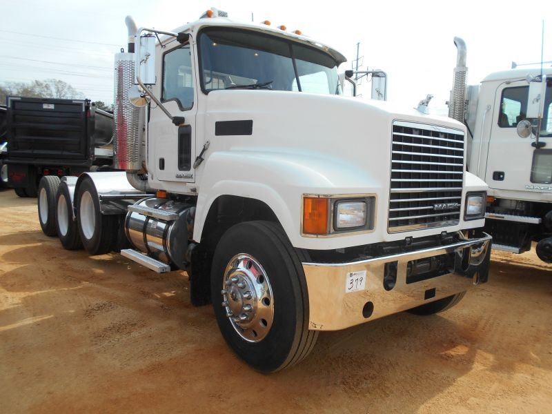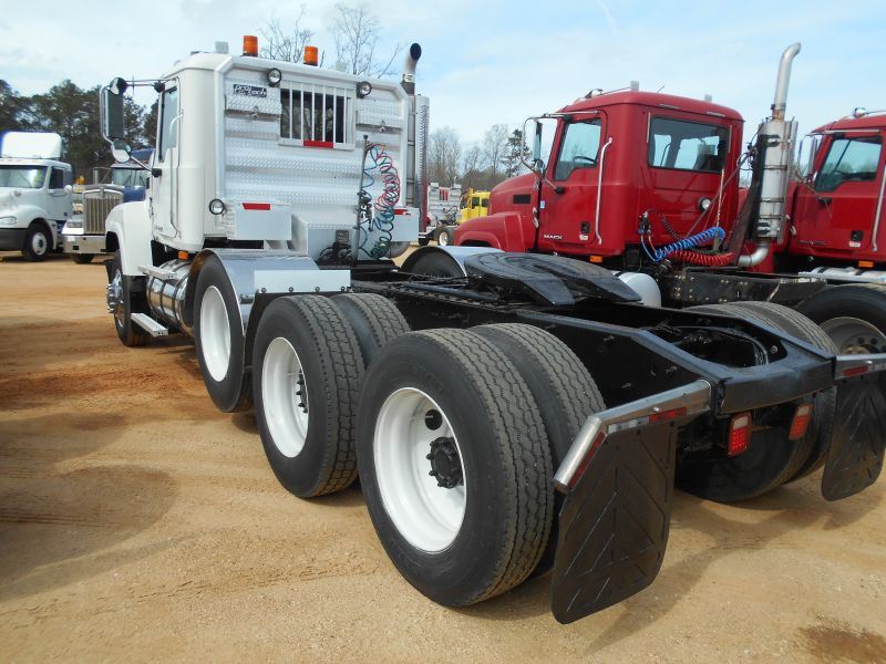 2008 MACK CHU613 PINNACLE TRI-AXLE TRUCK TRACTOR, S/N 1M2AN07Y38N001204, MP8 455E MACK ENG, EATON FULLER 13 SPD TRANS, 38K REARS, 13,220# FRONT, ENGINE BRAKE, ALUM HEADACHE RACK W/TOOLBOX, 11R24.5 REAR TIRES ON STEEL DISC WHEELS, 11R24.5 FRONT TIRES ON ALUM DISC WHEELS, ODOMETER READING 367,641 MILES