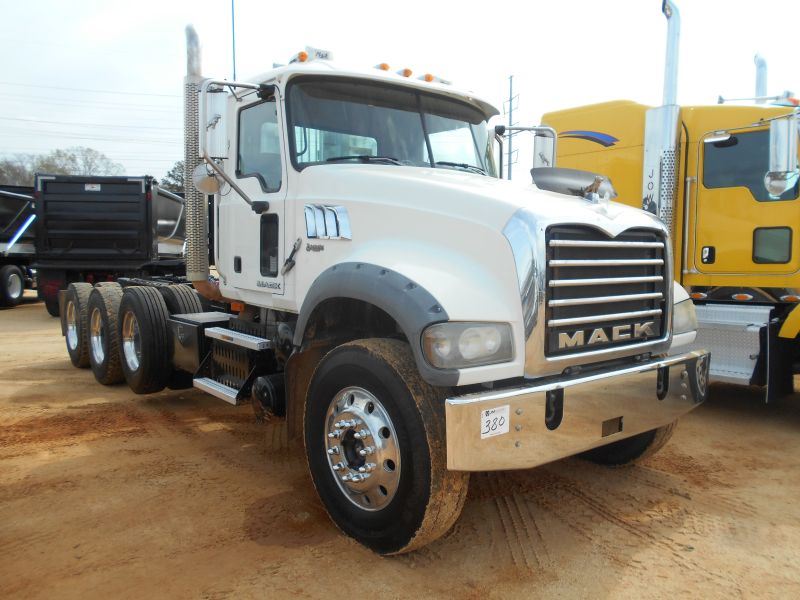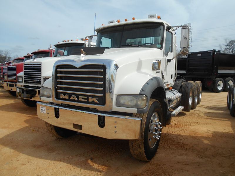 2008 MACK GU713 TRI-AXLE TRUCK TRACTOR, S/N 1M2AX07Y38M003129, MACK MP8 ENG, 18 SPD TRANS, 44K REARS, 13,220# FRONT, ENGINE BRAKE, ALUM HEADACHE RACK, 11R24.5 TIRES ON DISC WHEELS, ODOMETER READING 229,975 MILES