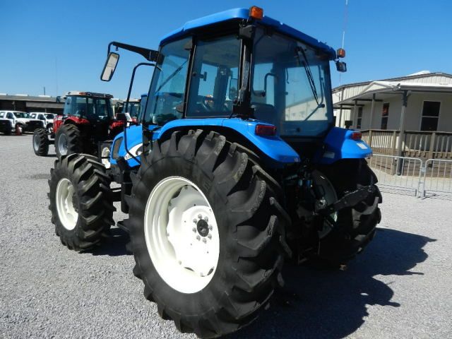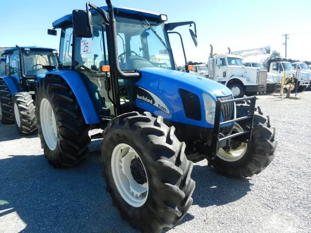 2008 NEW HOLLAND TL100A 4X4 FARM TRACTOR, S/N HJS100735, 3 PTH, PTO, TRIPLE REMOTES, TOP LINK, ECAB W/ AC, 18.4R-34 REAR TIRES, 14.9R-24 FRONT TIRES, METER READING 1,139 HOURS