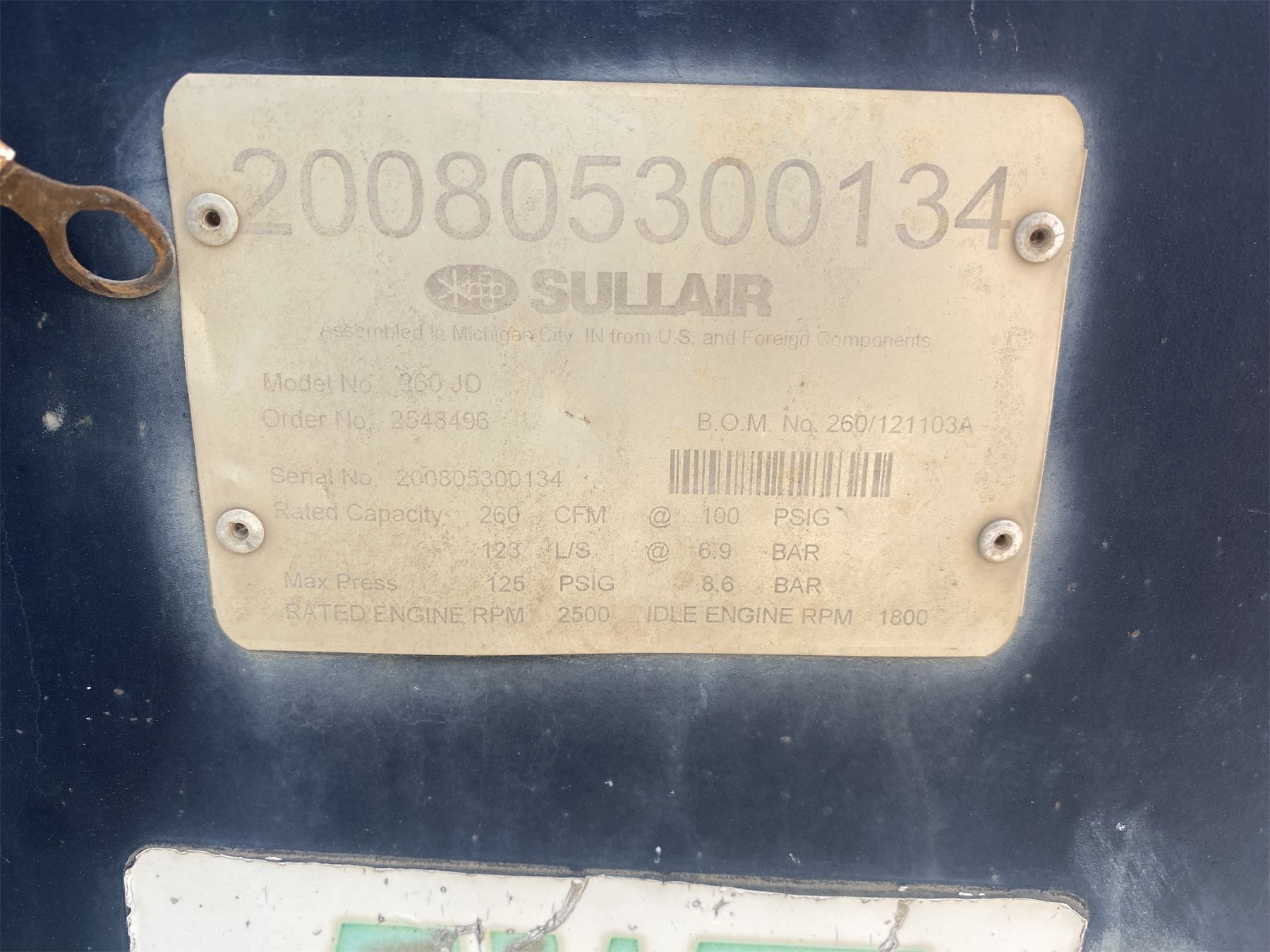2008 SULLAIR 260DPQ-JD Air Compressor