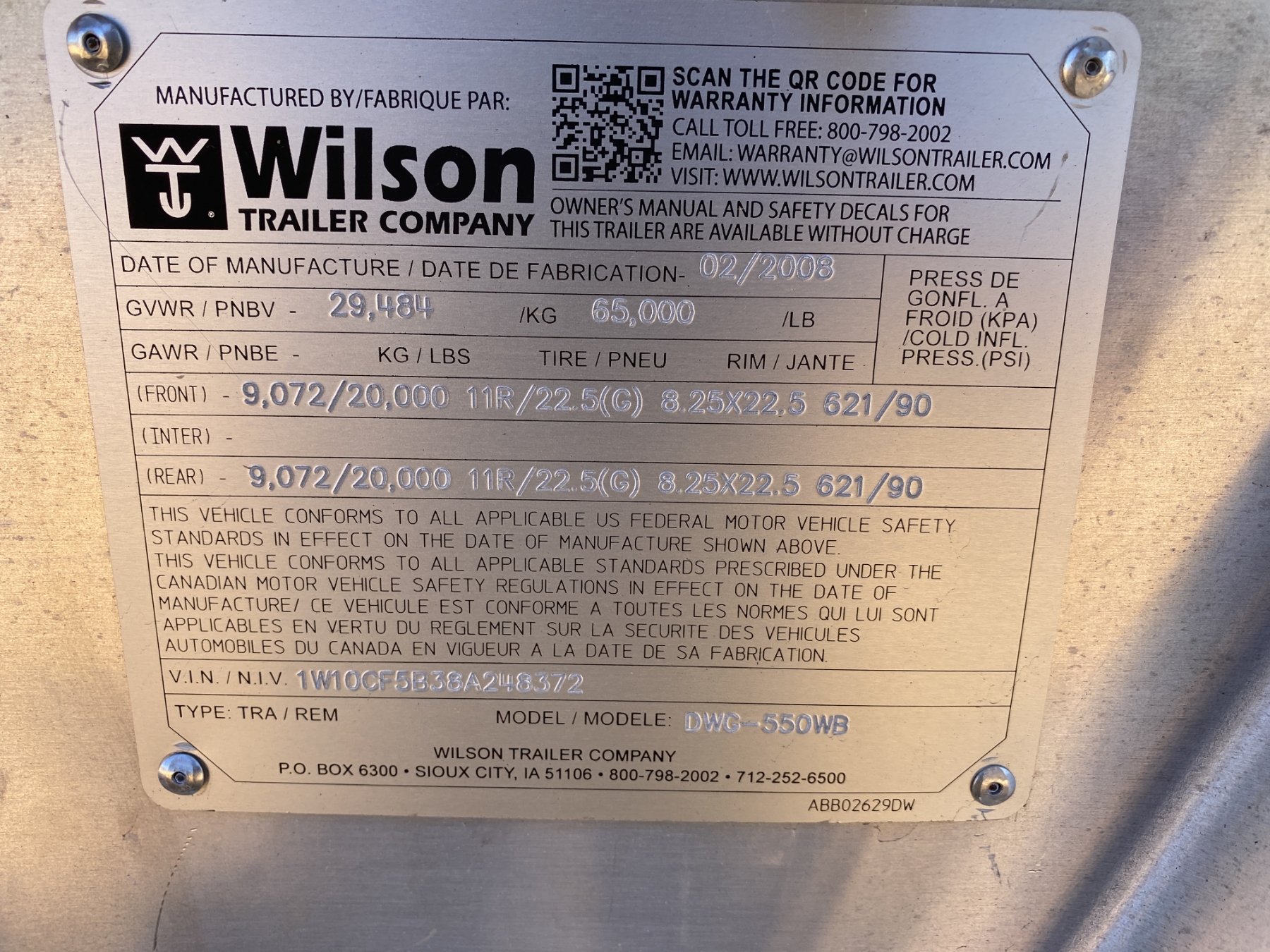 Vehicle ID Number: 1W10CF5B38A248372