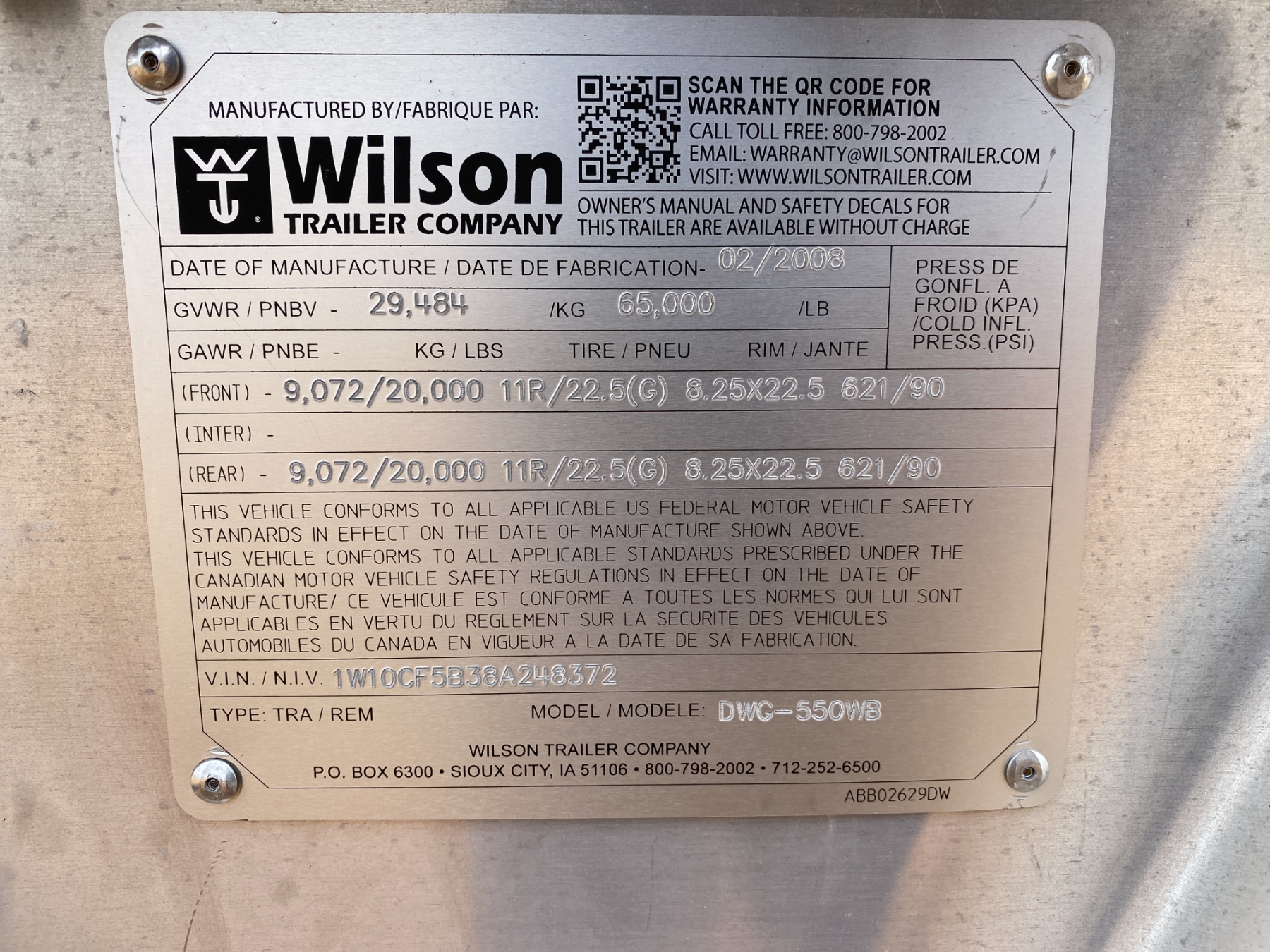 Vehicle ID Number: 1W10CF5B38A248372