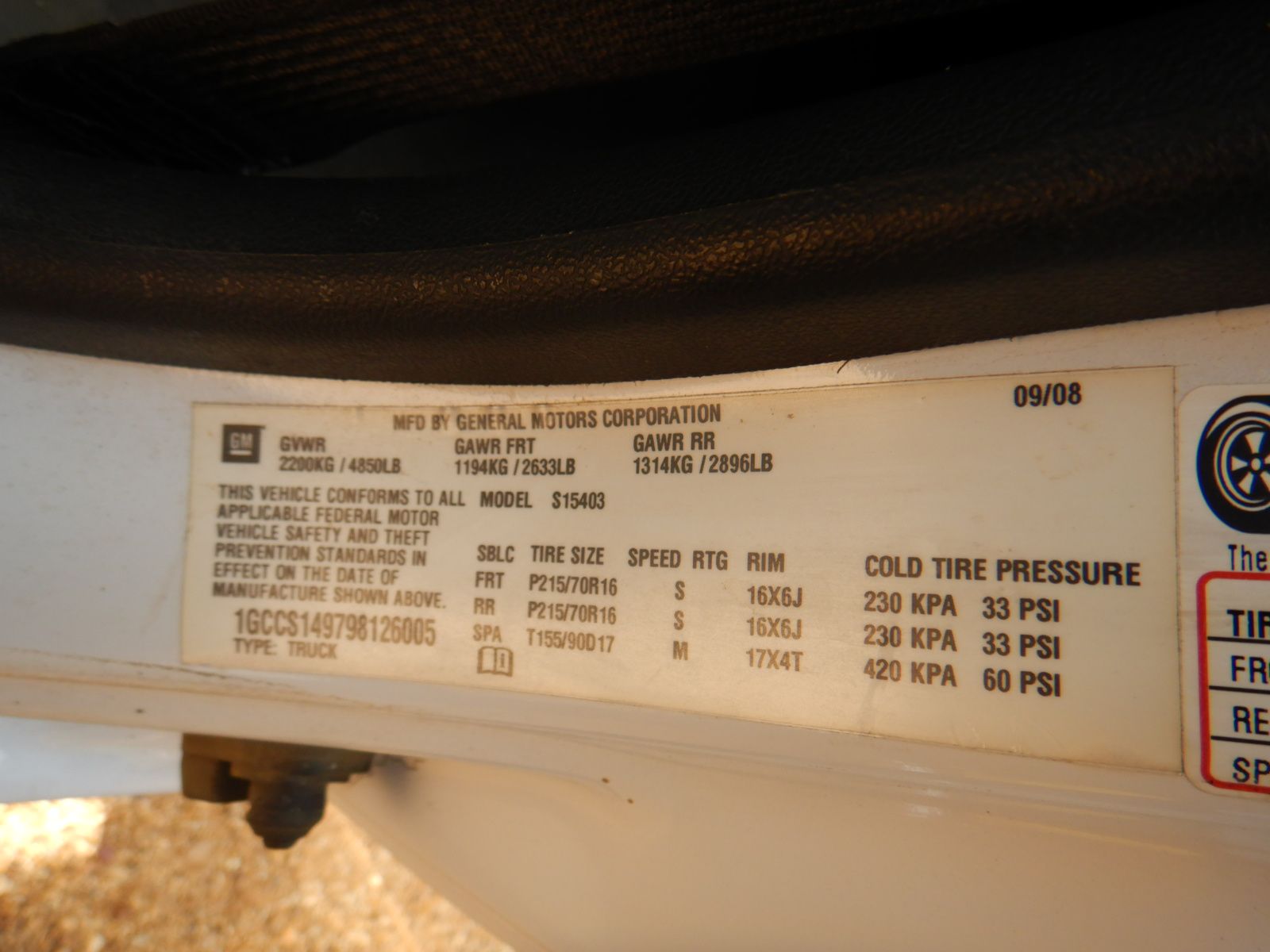 Vehicle ID Number: 1GCCS149798126005