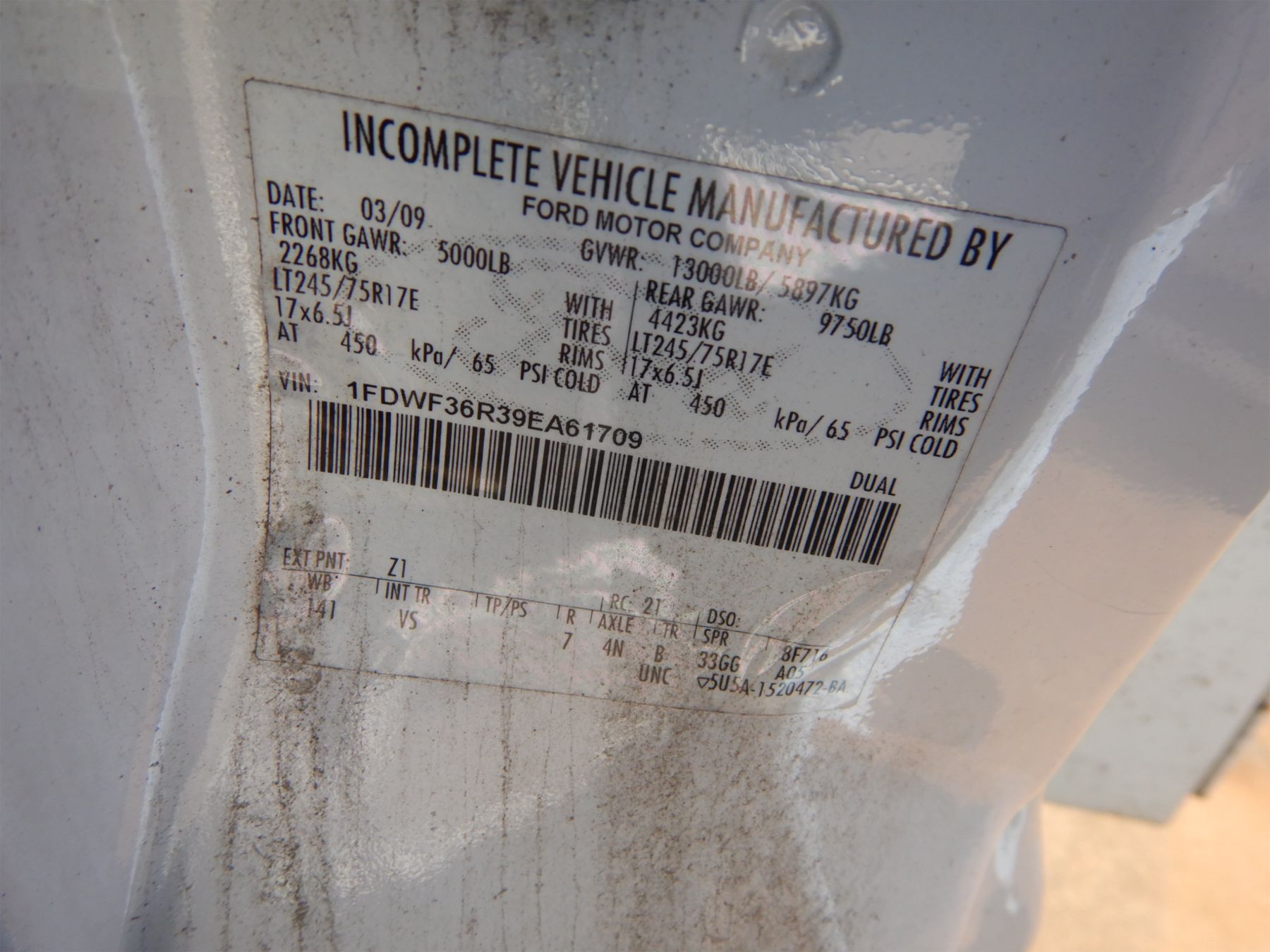 Vehicle ID Number: 1FDWF36R39EA61709