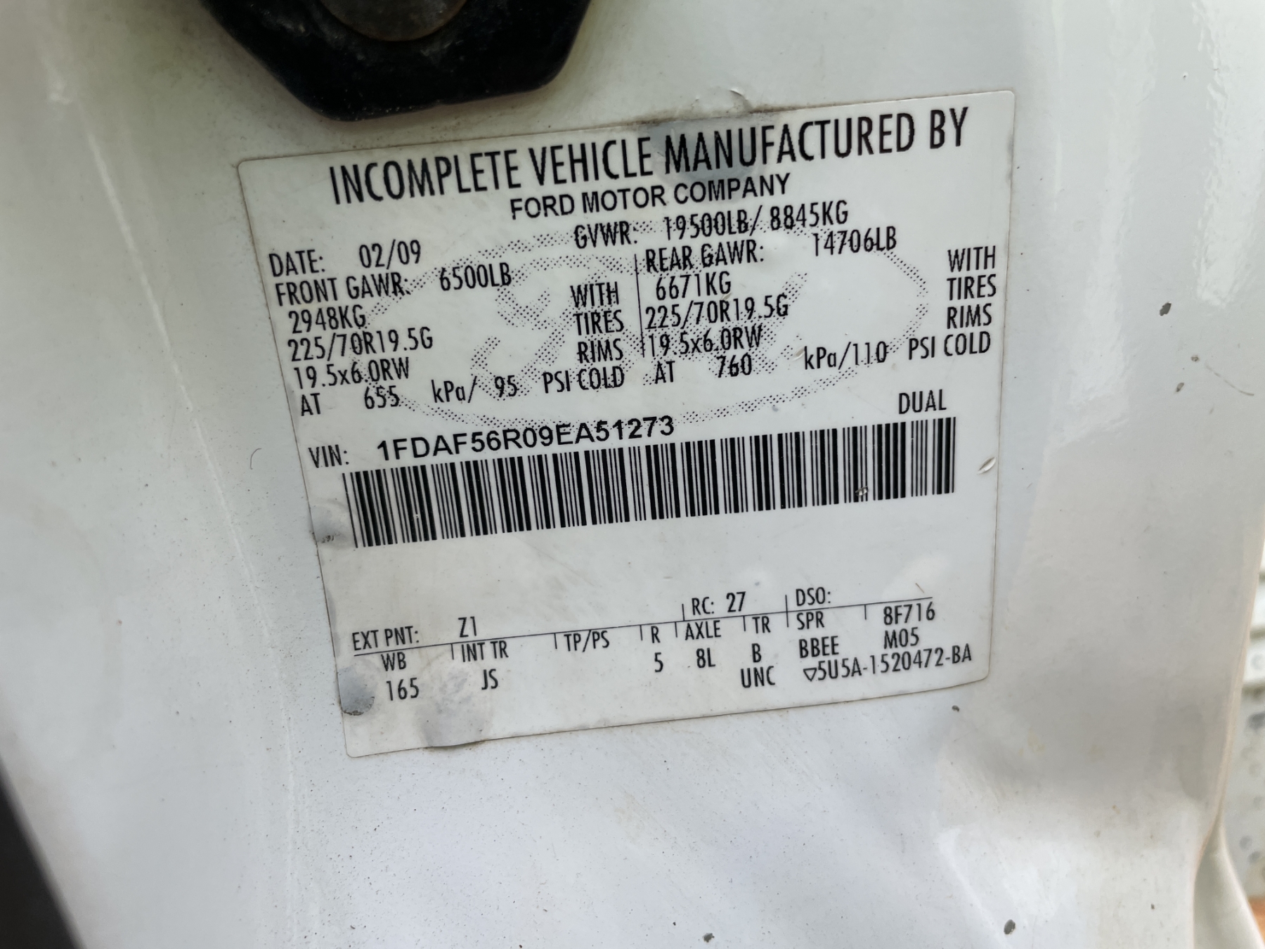 Vehicle ID Number: 1FDAF56R09EA51273