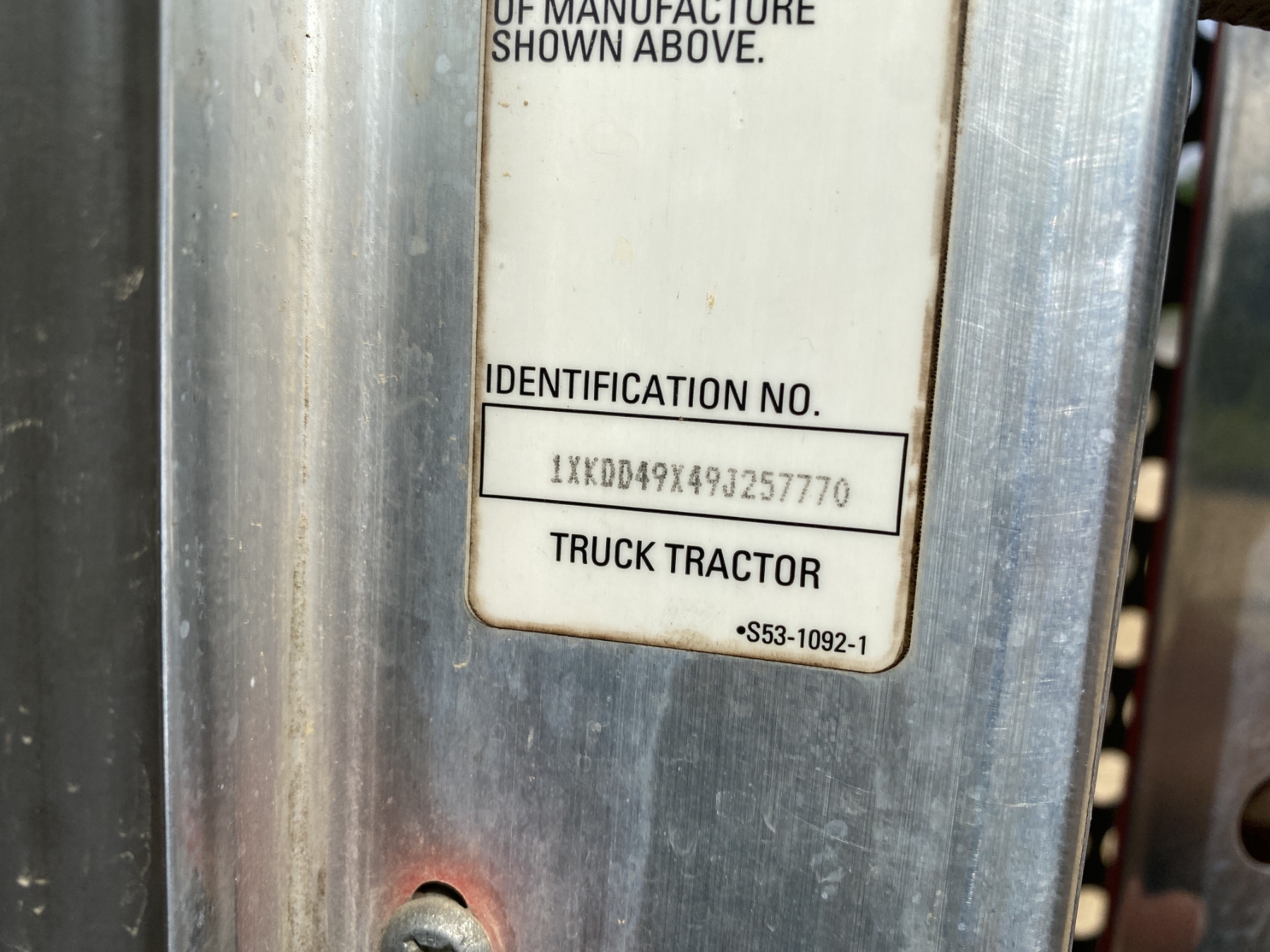 Vehicle ID Number: 1XKDD49X49J257770