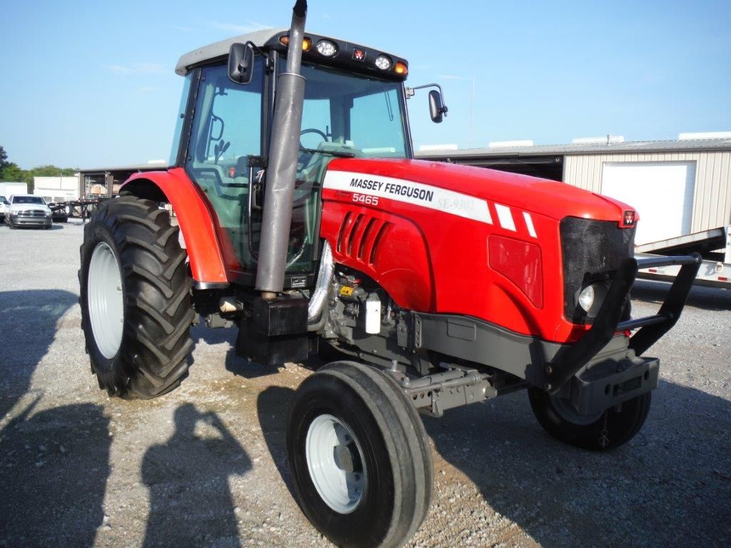 2009 MASSEY FERGUSON 5465 FARM TRACTOR, S/N U069013, 100 HP, 3 PTH, PTO, 3 hyd remotes, Dyna 4 Trans, ECAB w/AC, 18.4-34 rear tires, 10.00- 16 front tires, meter reading 1,395 hours