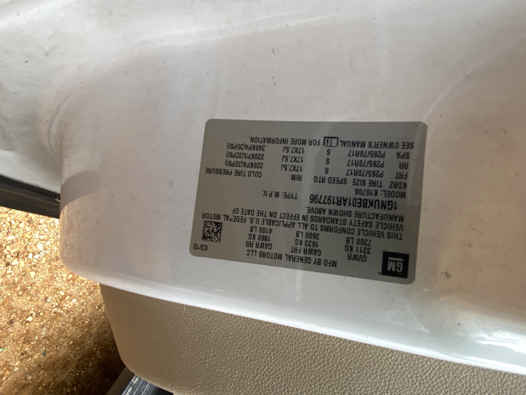 Vehicle ID Number: 1GNUKBE01AR197796
