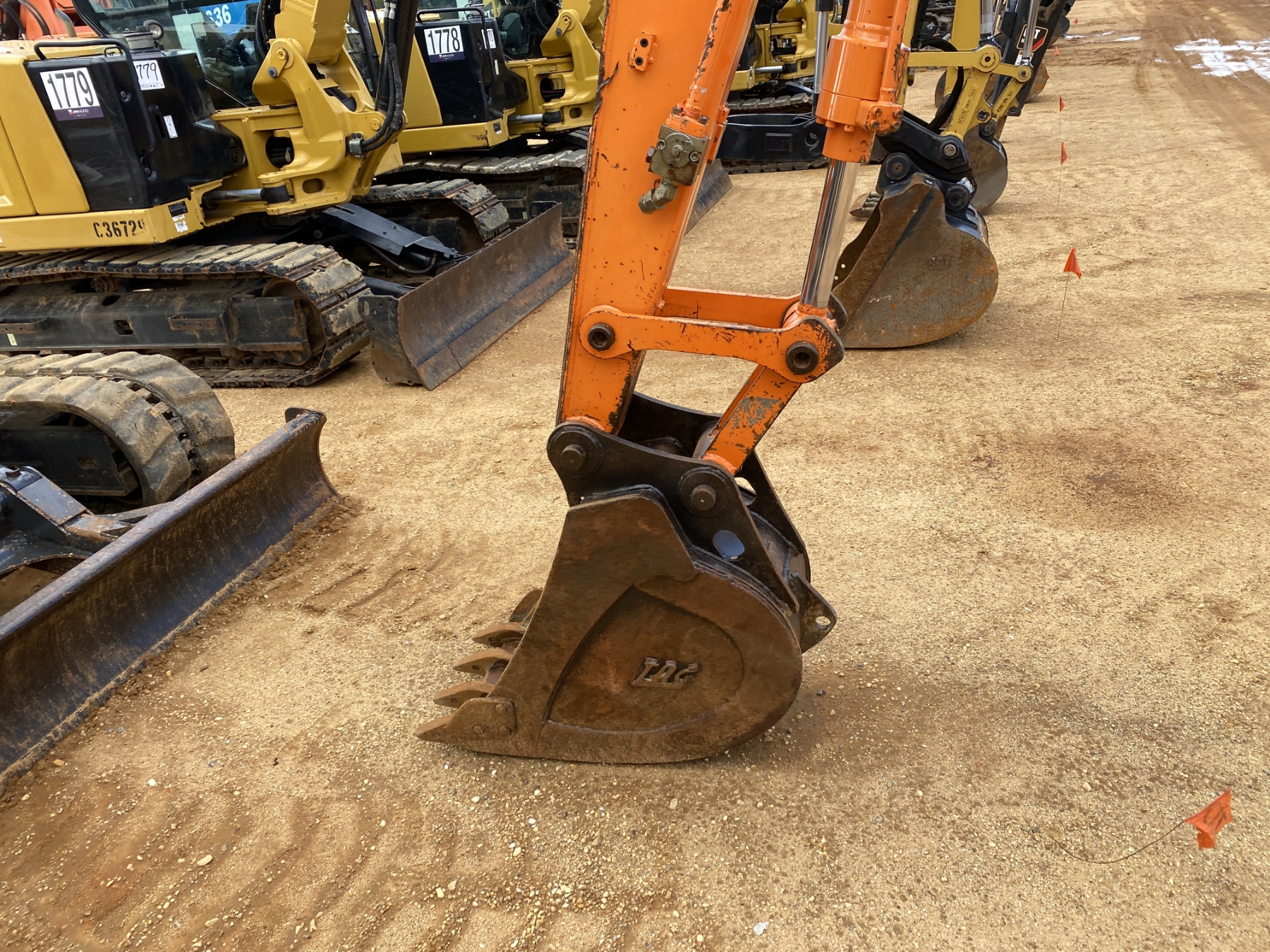 7' 4" stick, 18" bucket, aux hyd, blade, rubber tracks, cab, A/C