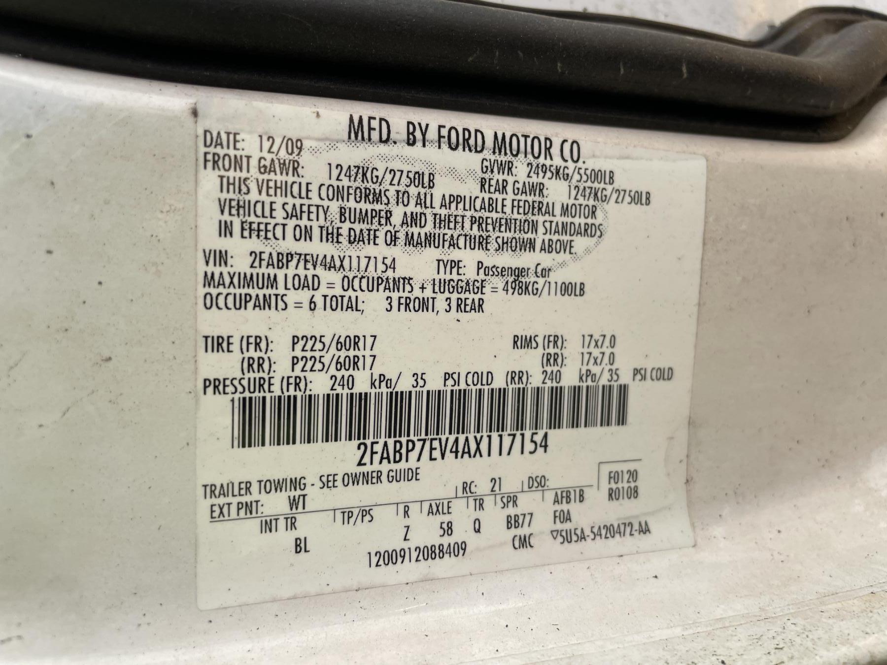 Vehicle ID Number: 2FABP7EV4AX117154