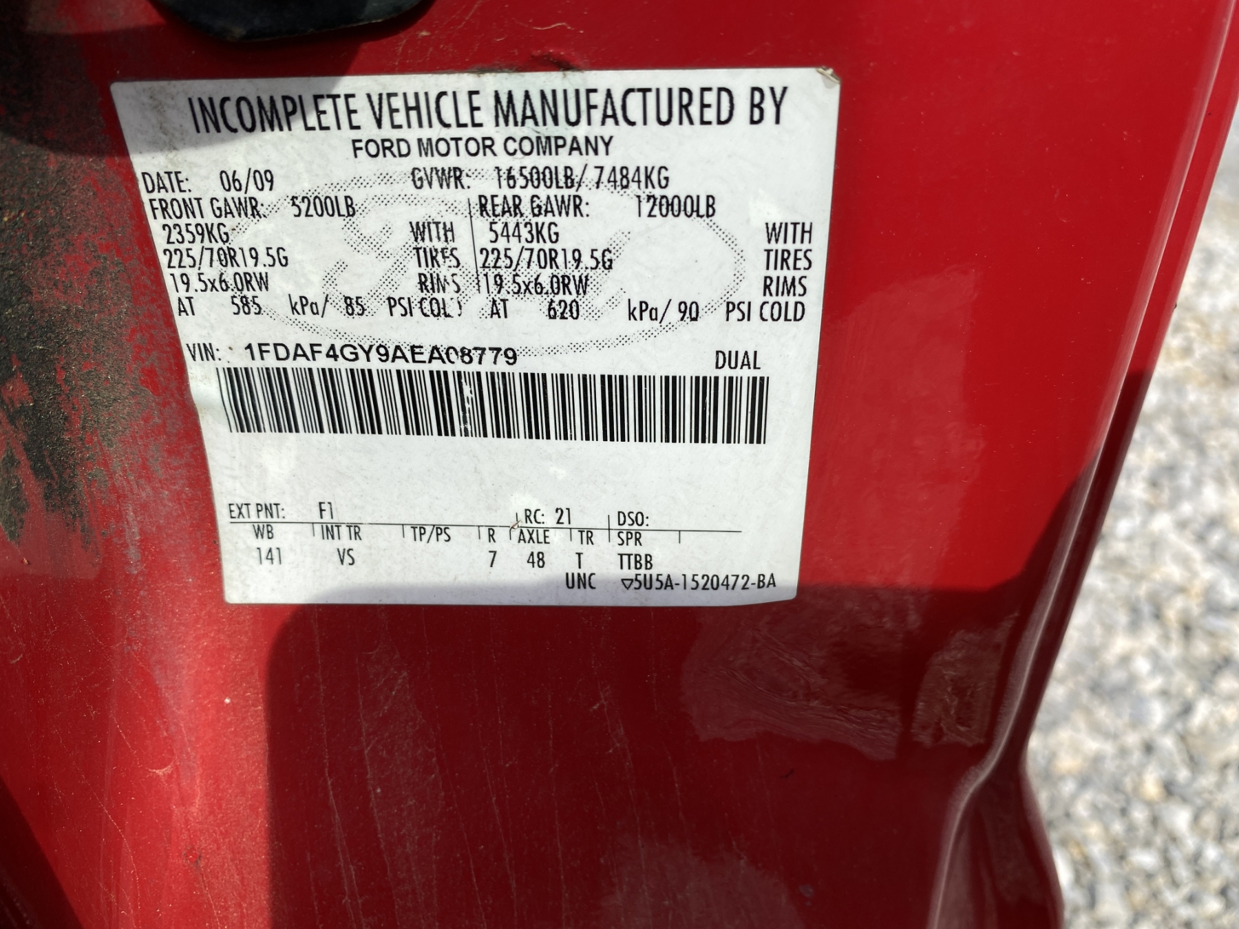 Vehicle ID Number: 1FDAF4GY9AEA08779