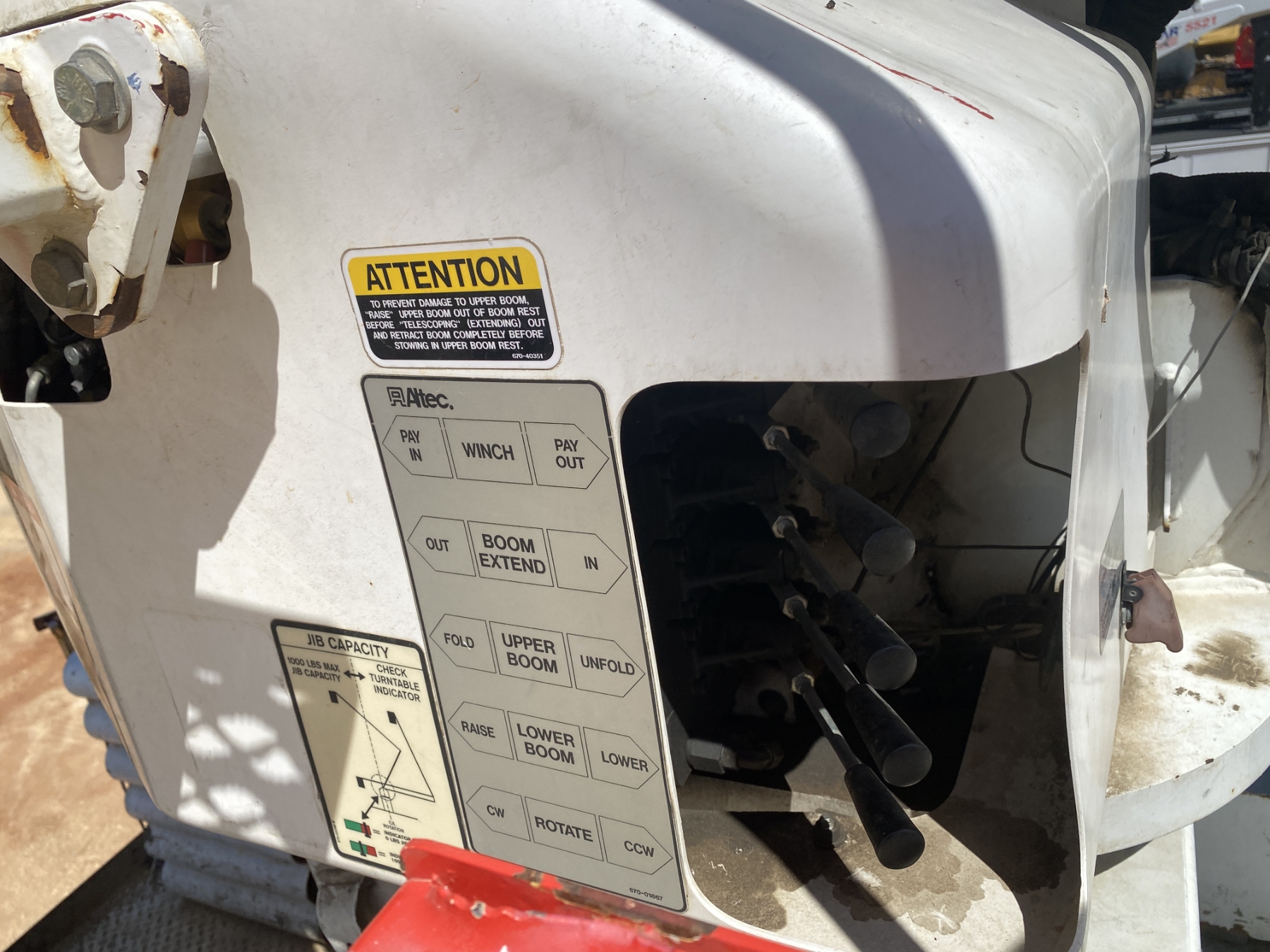 T/A, Cummins ISC engine, Allison A/T, Altec body, Altec A77-T bucket, 800 lb. capacity, 76.5' platform height