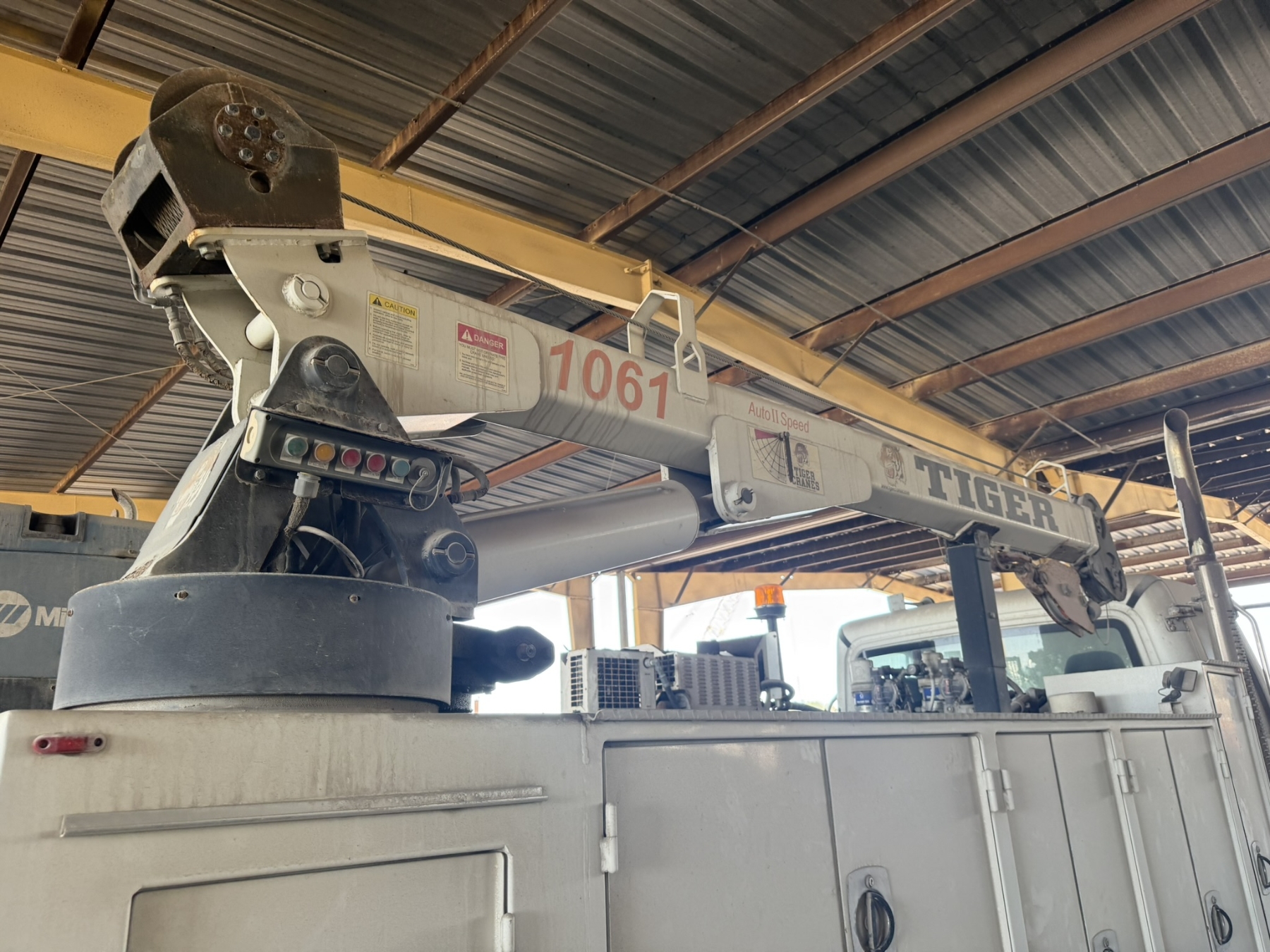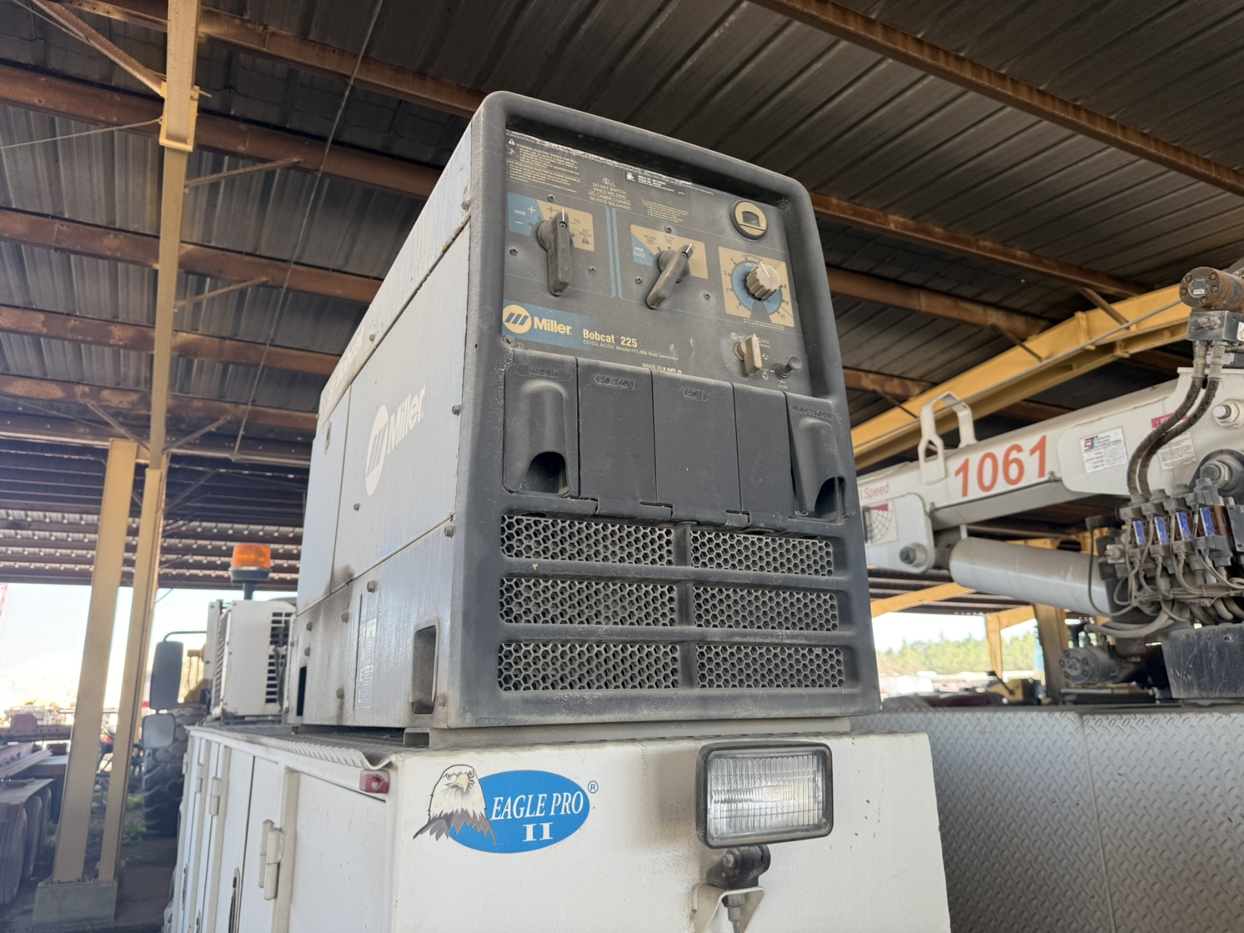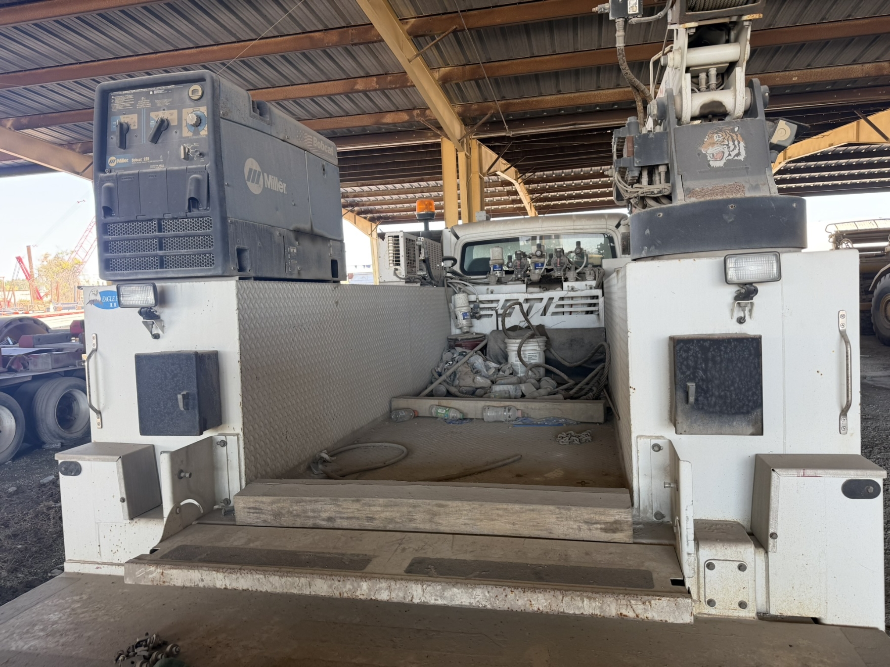S/A, Cummins ISC engine, Allison A/T, Eagle Pro II service body, Tiger 1061 crane, (2) product tanks, hyd air compressor, Miller Bobcat 225 welder, hose reels, hyd outriggers, workbench bumper