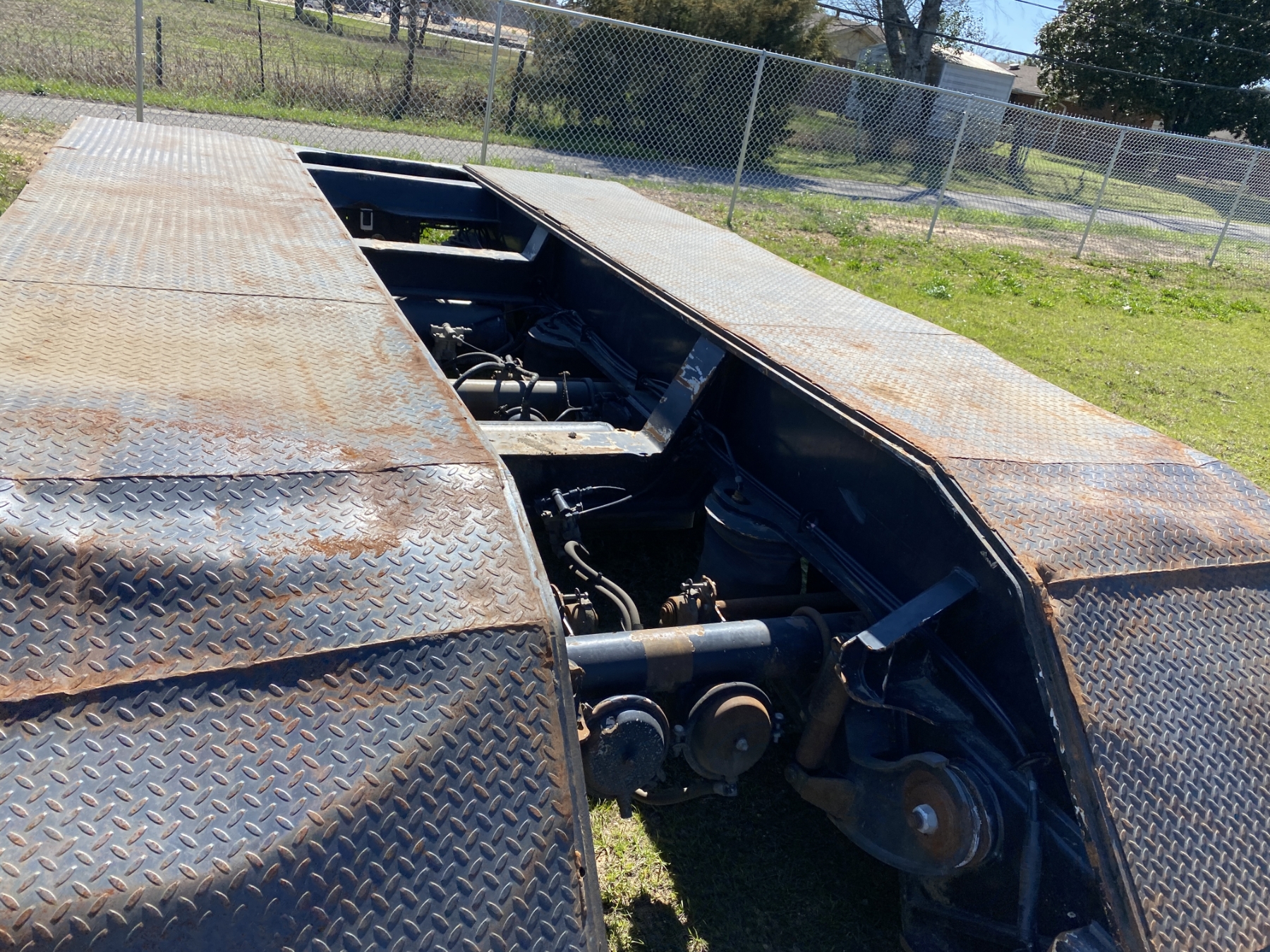 Tri Axle, RGN, NGB, 24' well, 102" width, excavator trough, covered wheel wells, air ride, 275/70R22.5 tires