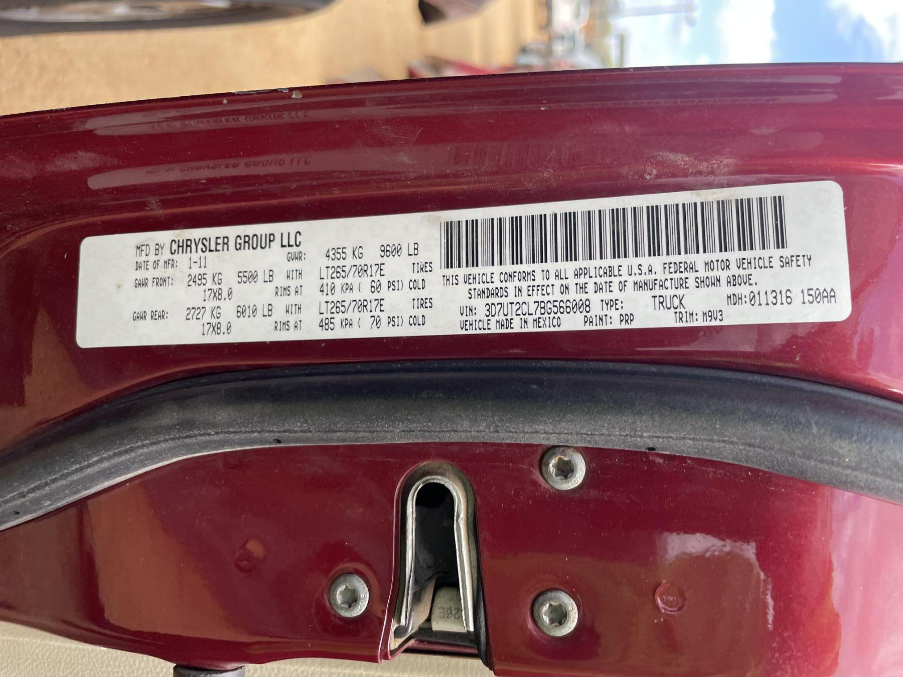 Vehicle ID Number: 3D7UT2CL7BG566008