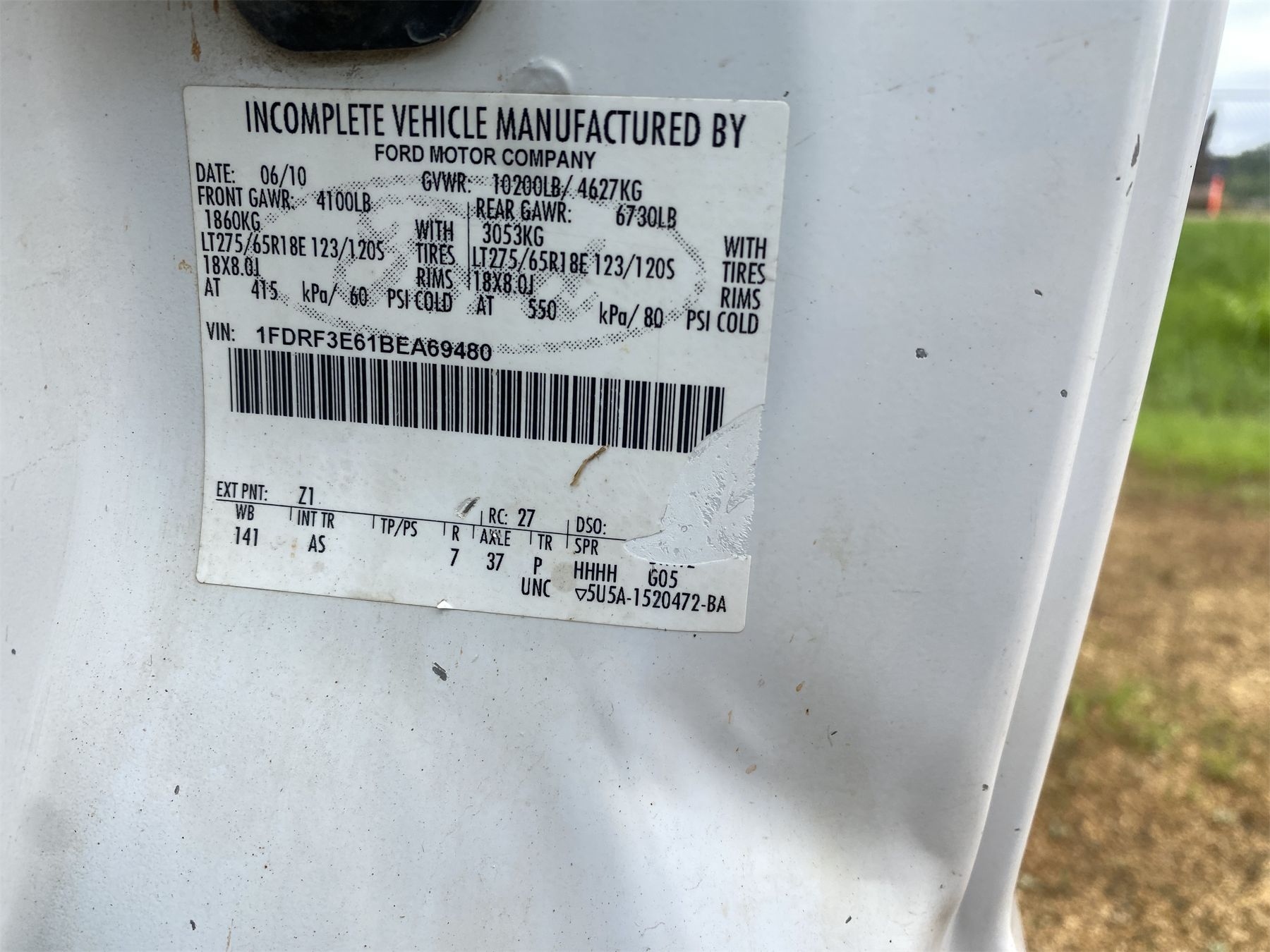 Vehicle ID Number: 1FDRF3E61BEA69480