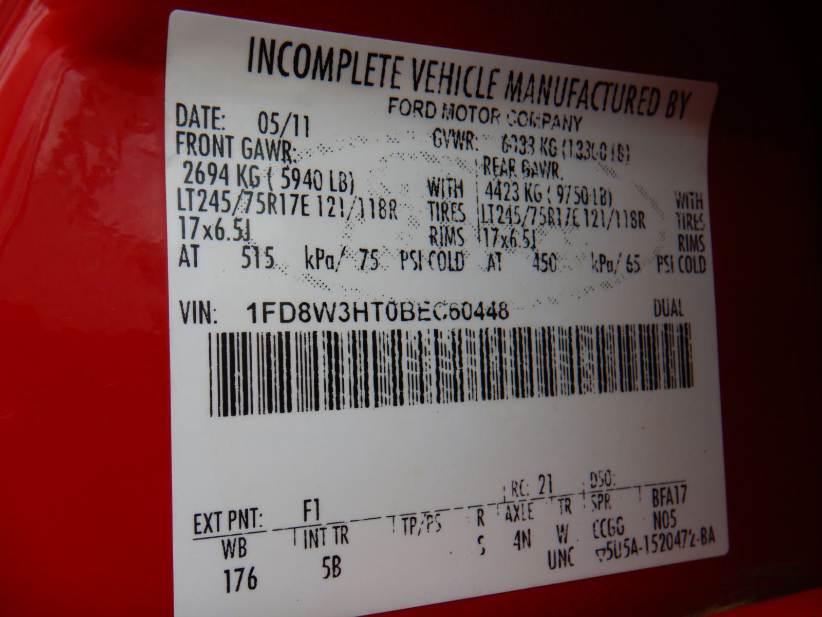 Vehicle ID Number: 1FD8W3HT0BEC60448