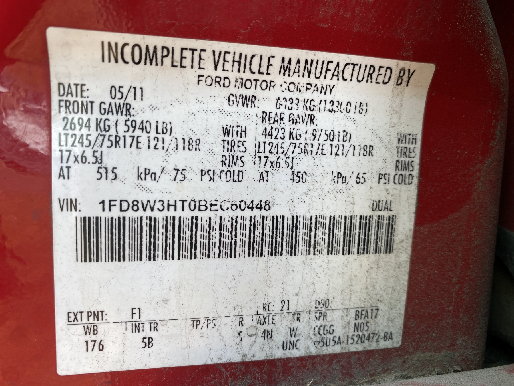Vehicle ID Number: 1FD8W3HT0BEC60448