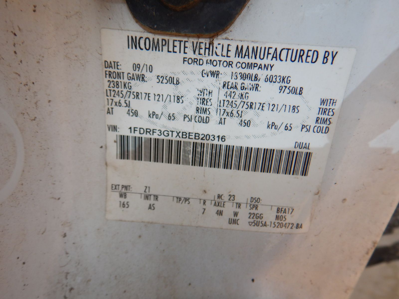 Vehicle ID Number: 1FDRF3GTXBEB20316