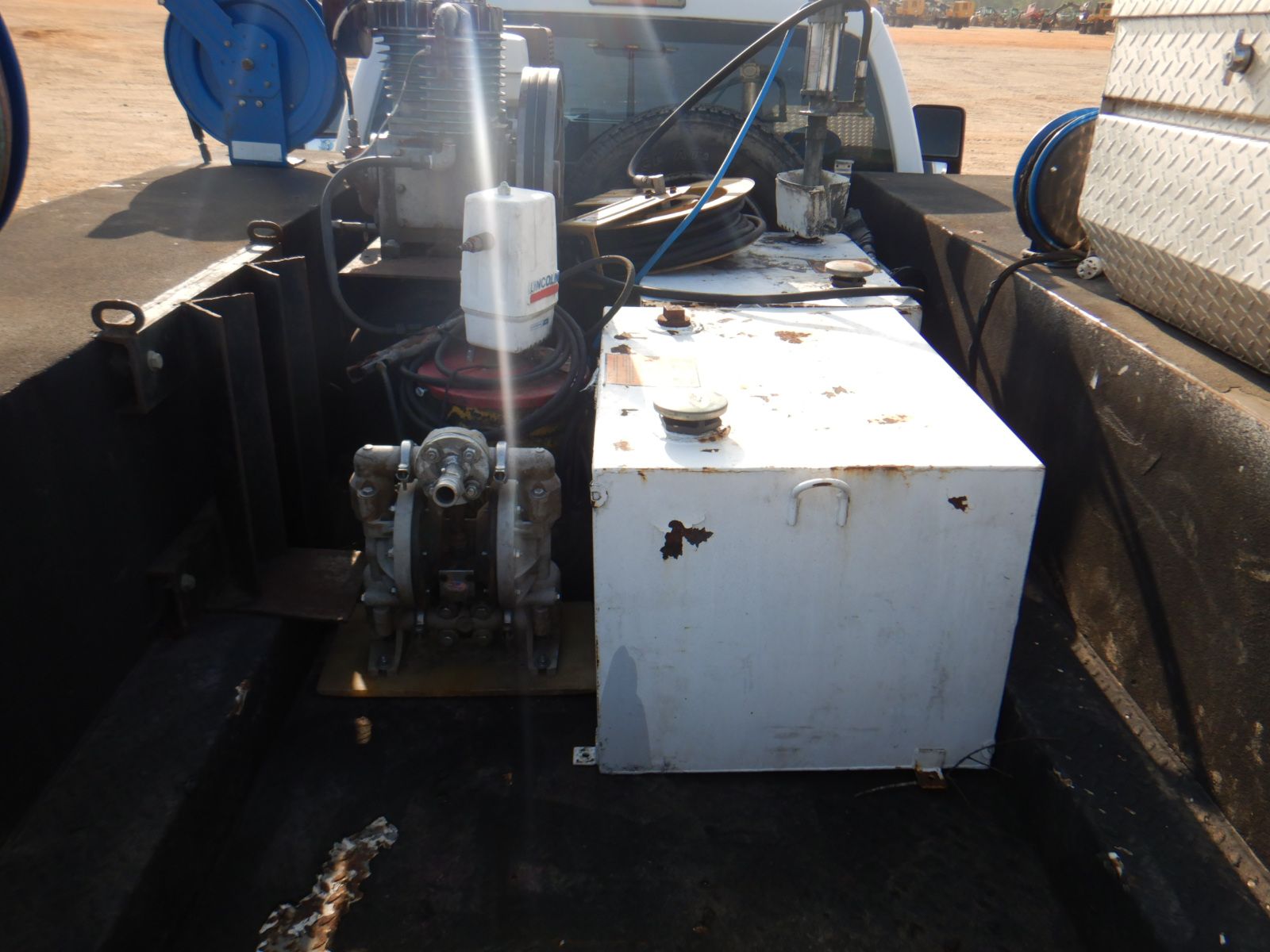 Power Stroke diesel, A/T, RKI service body, (2) product tanks, air compressor, hose reels