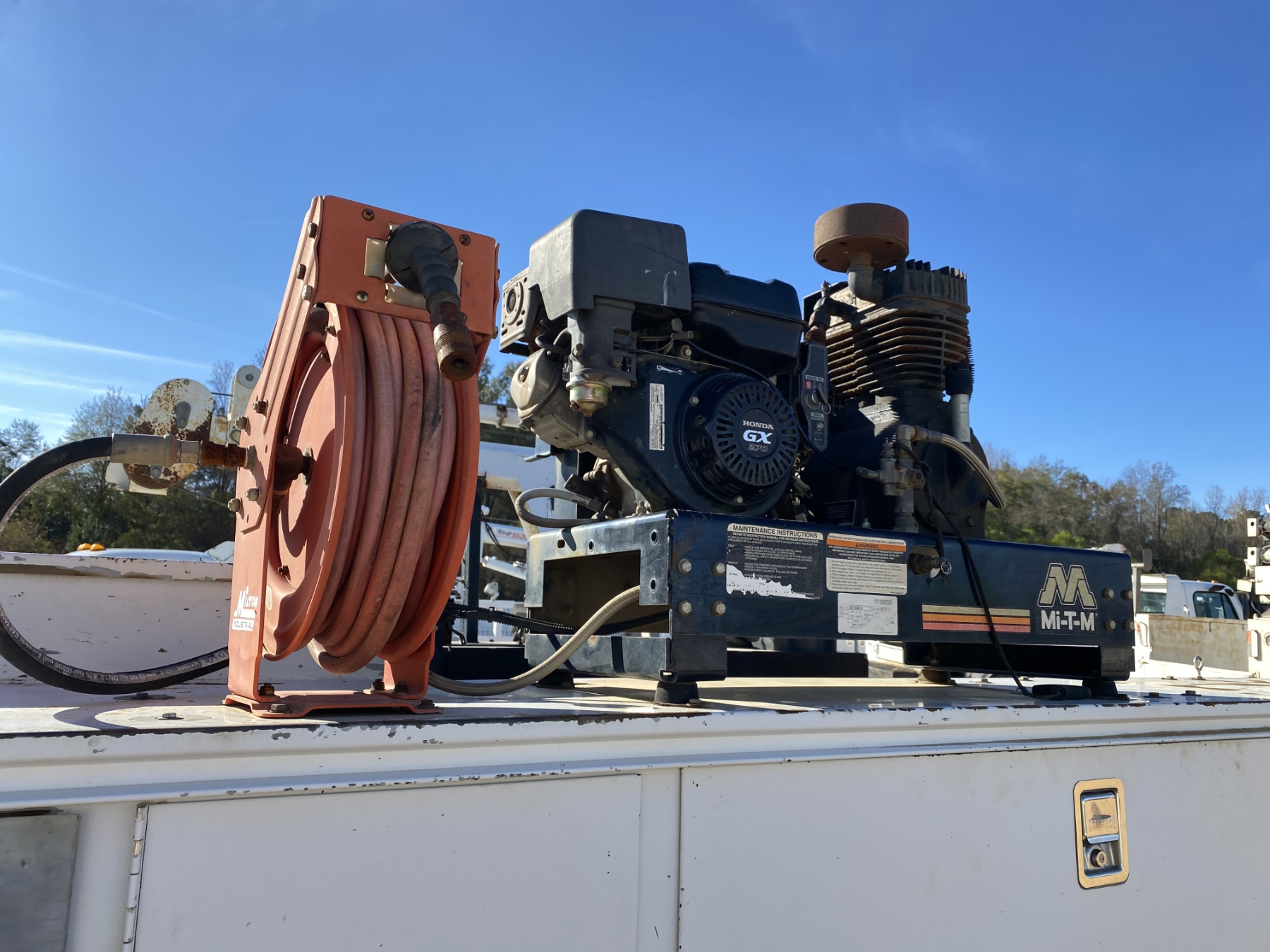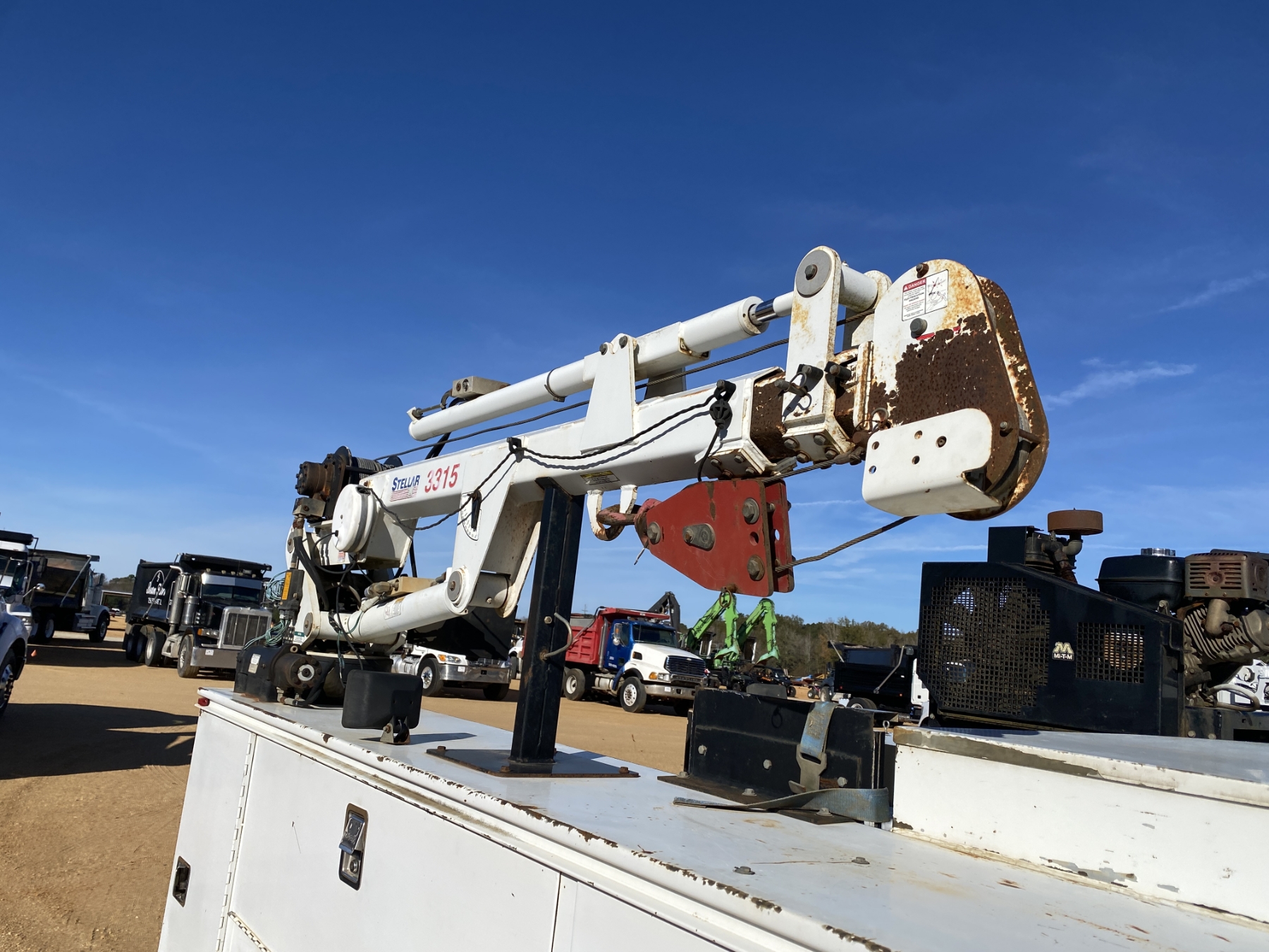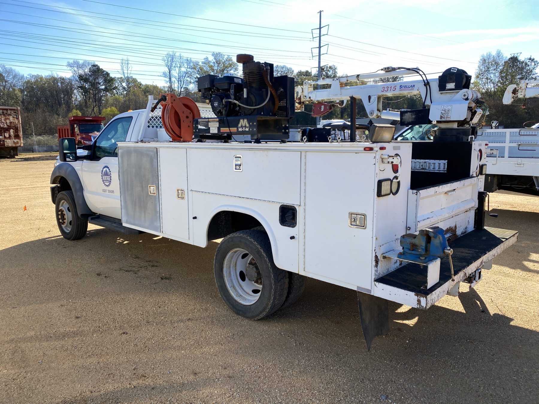 4x4, gas, A/T, Knapheide body, Stellar 3315 crane, air compressor