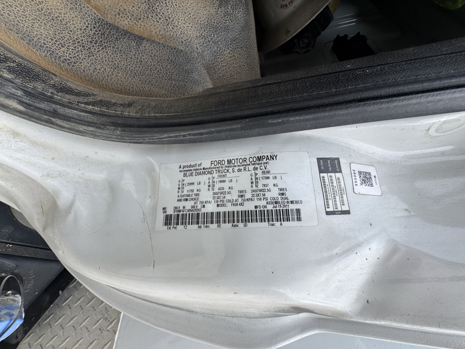 Vehicle ID Number: 3FRWF6FC5BV629263