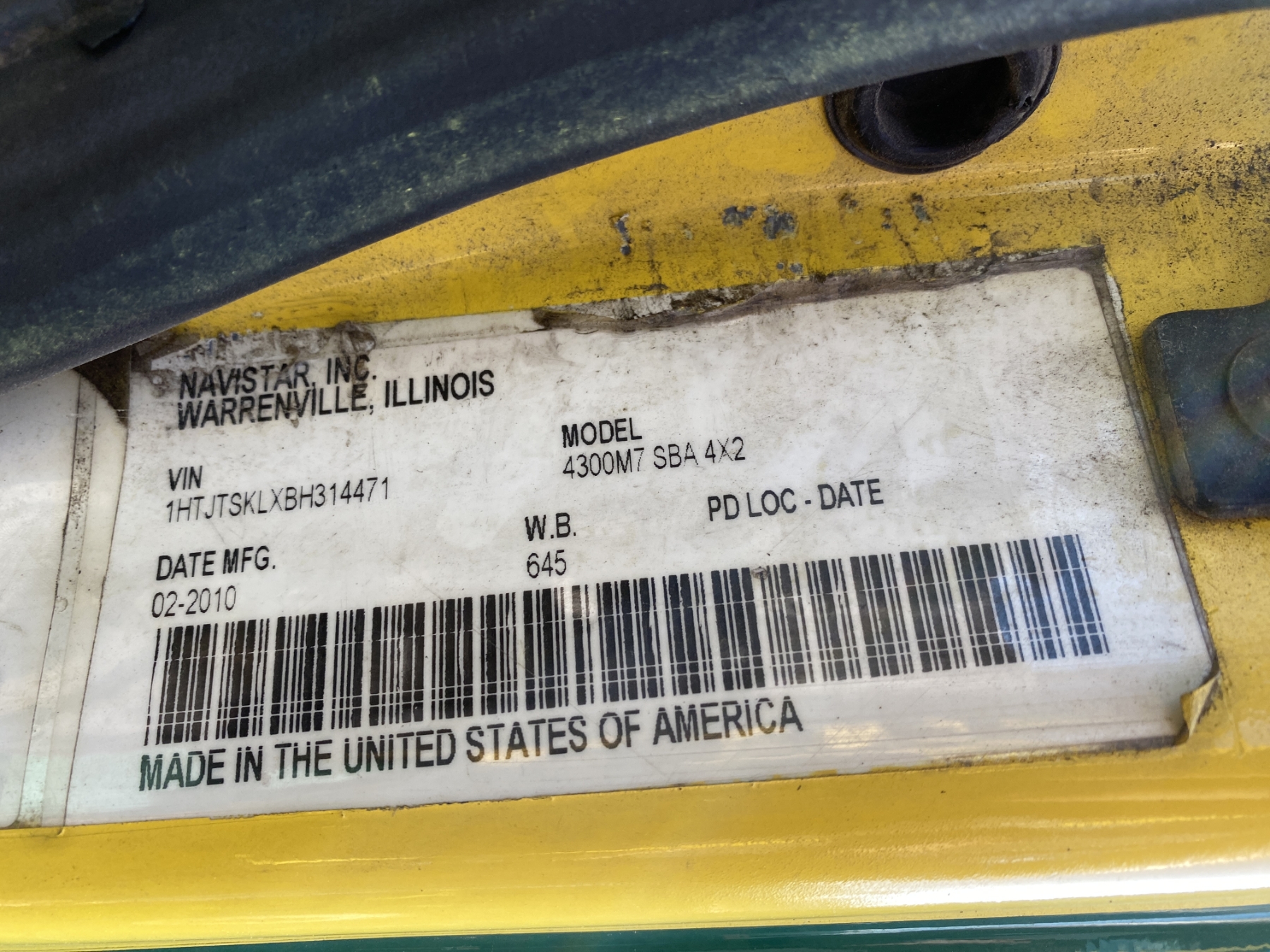 Vehicle ID Number: 1HTJ2SKLXBH314471