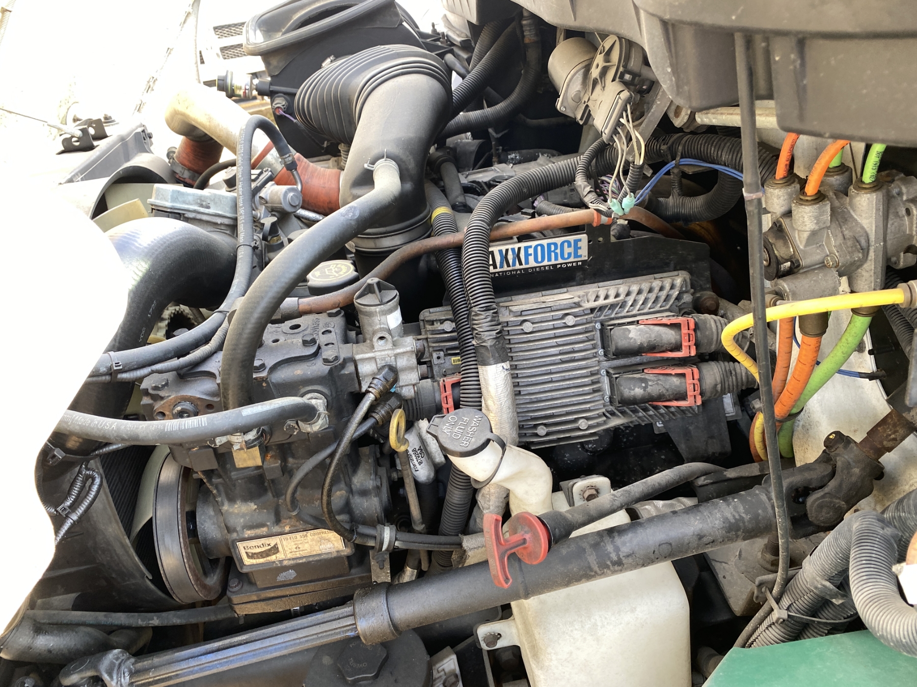 S/A, MaxxForce engine, 25,500 lb. GVWR, A/T, 20' flatbed dump body, 11R22.5 tires