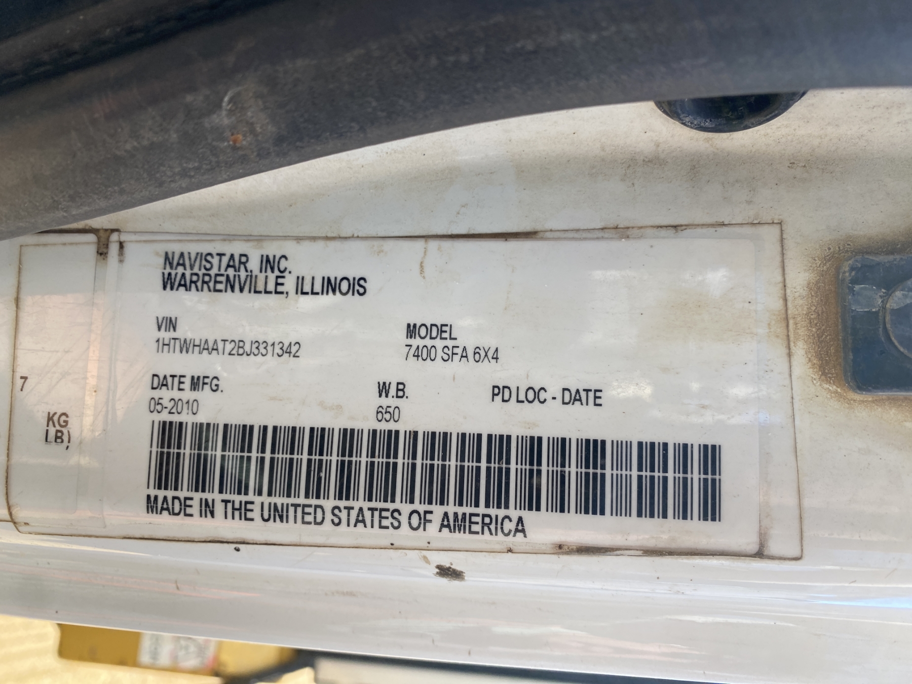 Vehicle ID Number: 1HTWHAAT2BJ331342