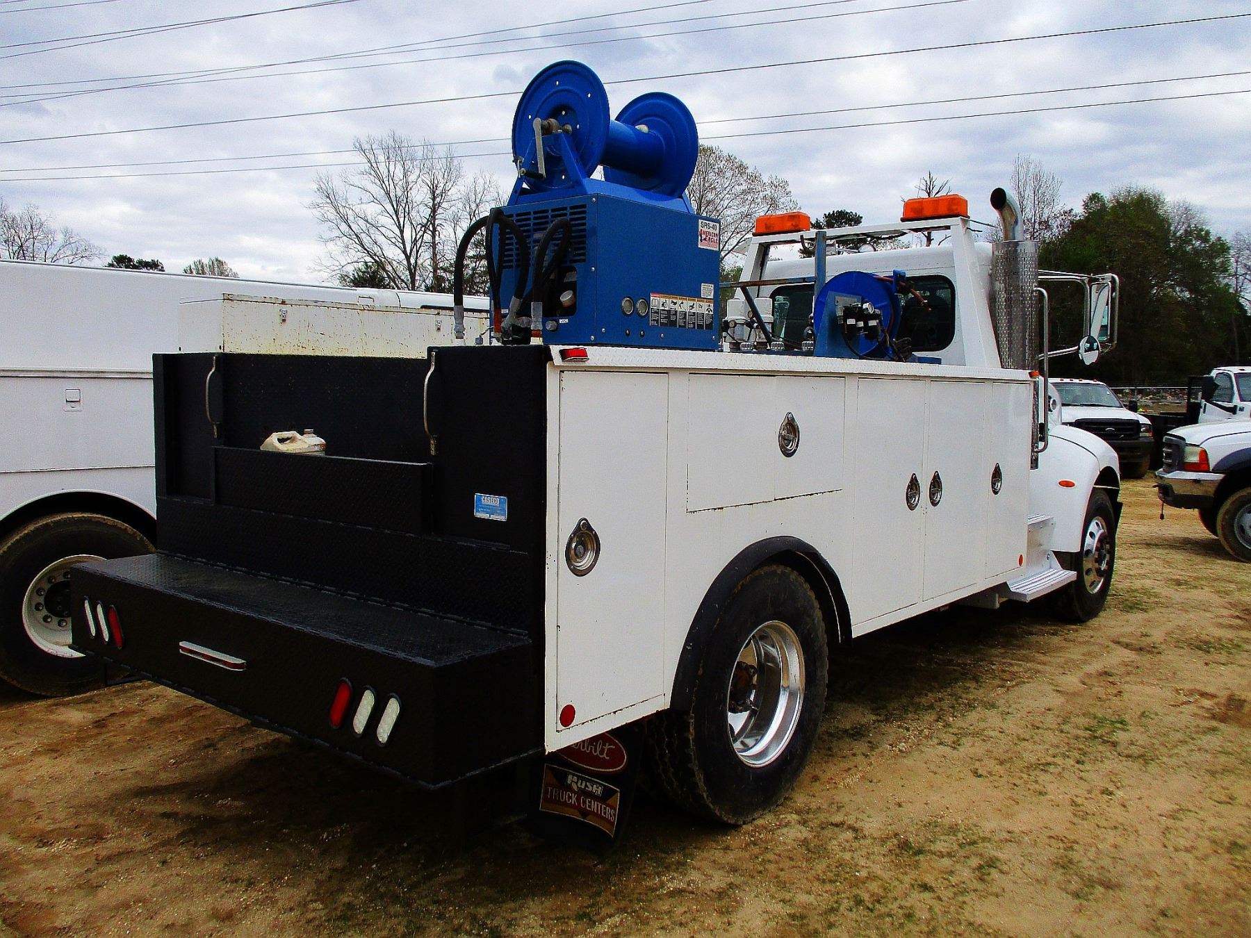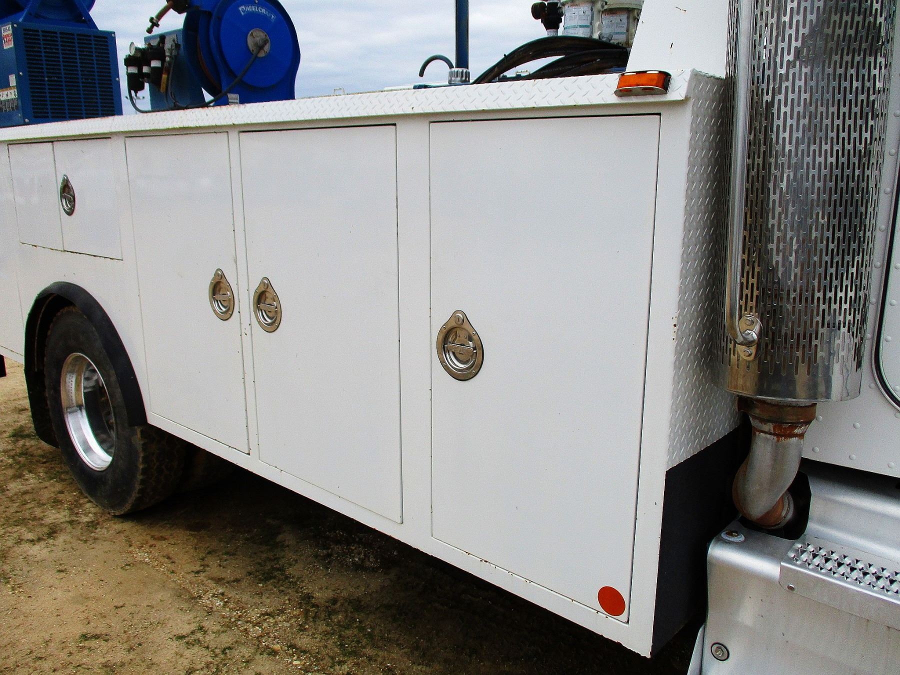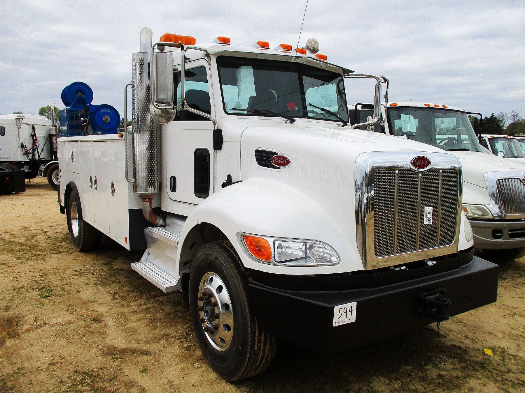 2011 PETERBILT SERVICE TRUCK, VIN/SN:2NP2HN7X5BM124829 - PACECAR PX8 DIESEL ENGINE, 10 SPEED TRANS, GVWR 33,000#, CASE CO SERVICE BODY, PRODUCT TANKS, HOSE REELS, AIR COMPRESSOR, ODOMETER READING 37,647 MILES