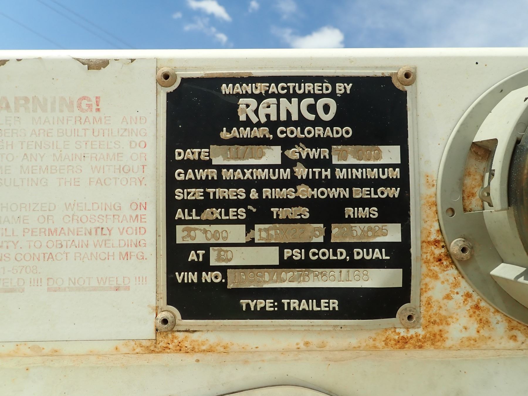 2011 RANCO LW21-40 BELLY DUMP TRAILER, VIN/SN:1D9SD4027BR661168 - T/A, 40' LENGTH, 21 YD CAP, 11R24.