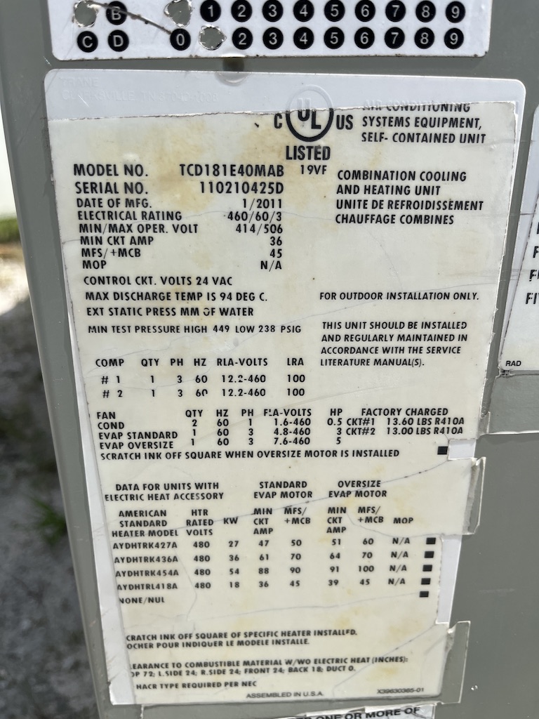 2011 TRANE VOYAGER AIR CONDITIONER UNIT