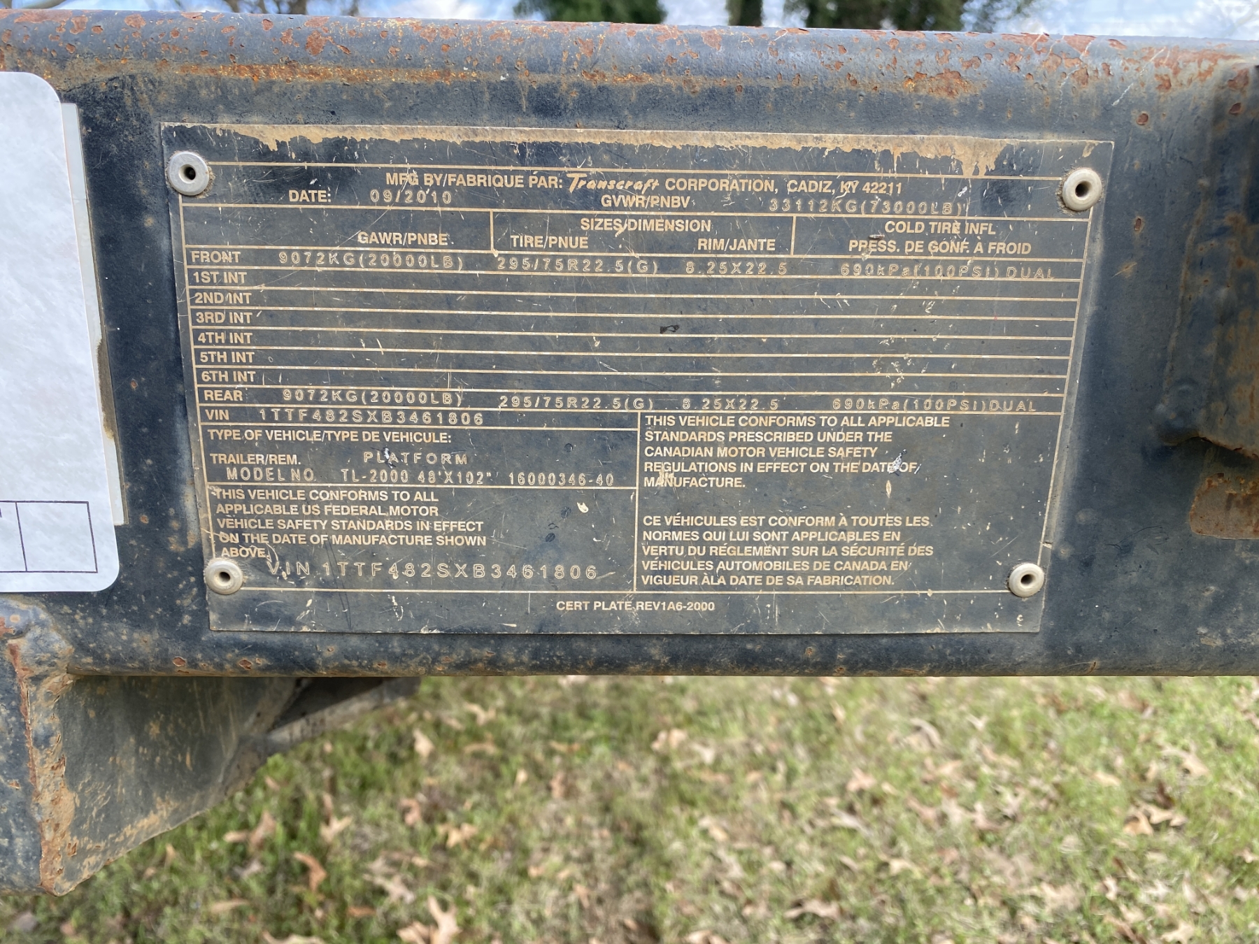 T/A, 48' length, spread axle, 295/75R22.5 tires