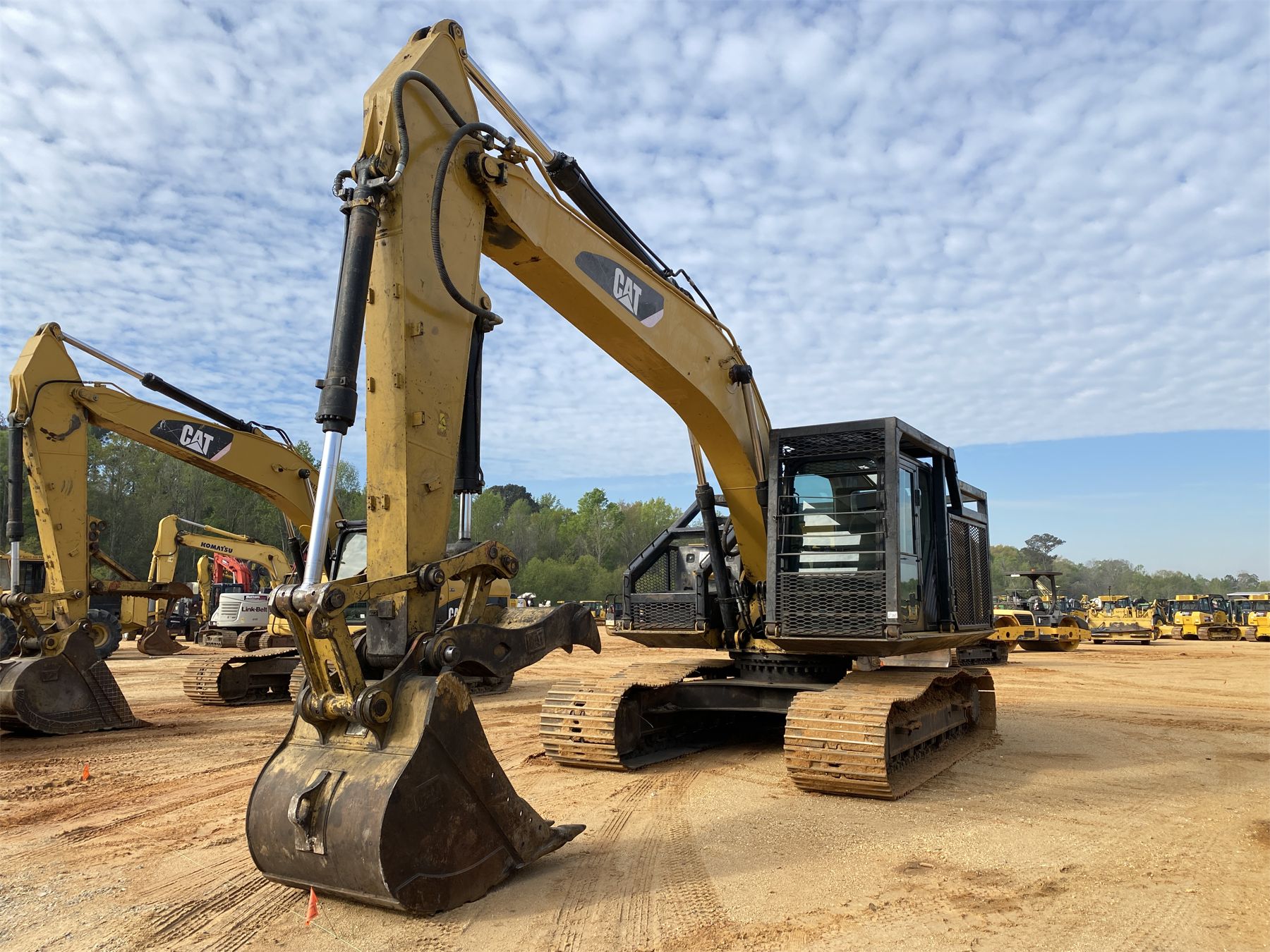 9' 6" stick, 42" bucket, hyd thumb, aux hyd, catwalk, cab, A/C, forestry package