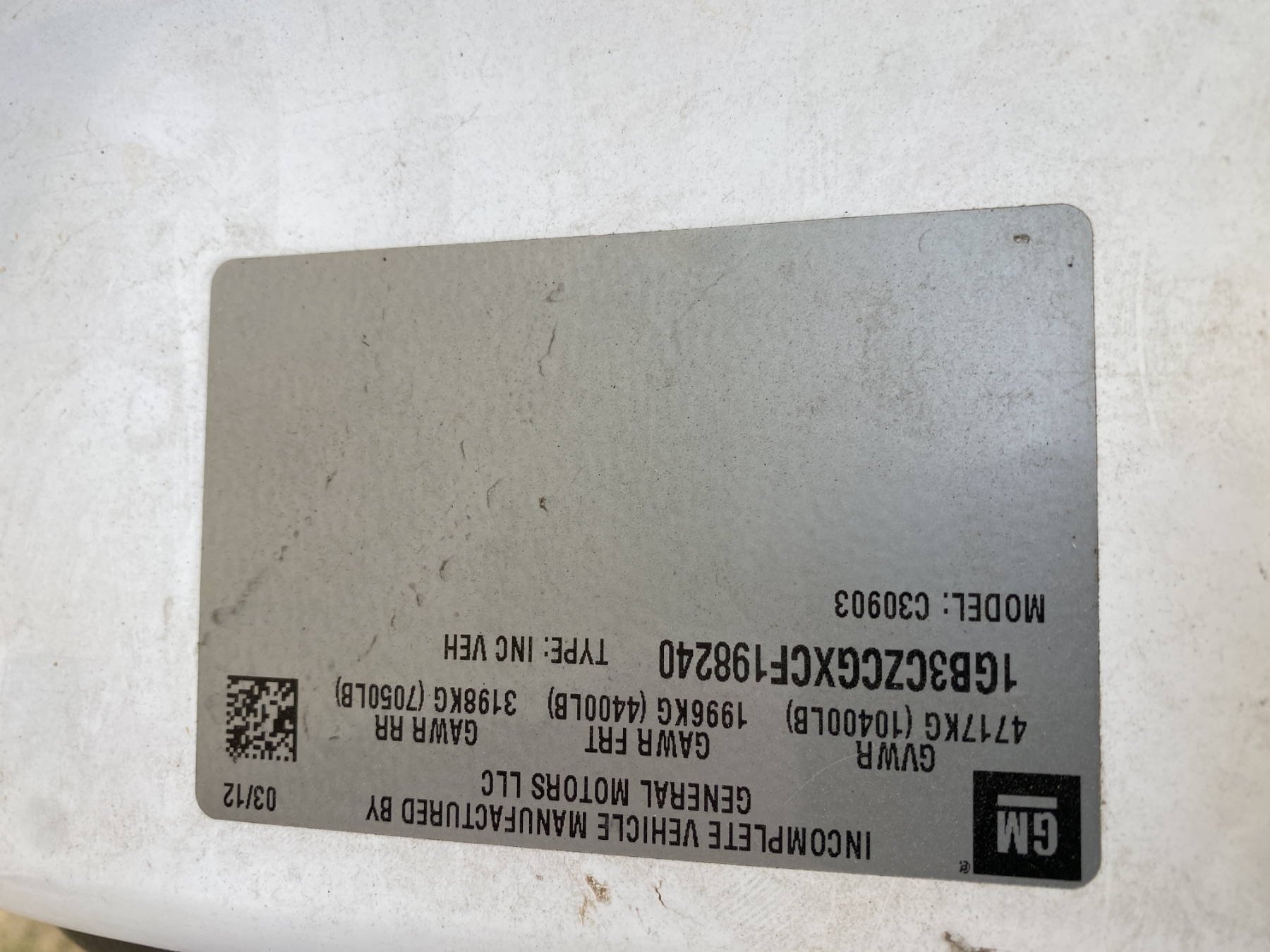 Vehicle ID Number: 1GB3CZCGXCF198240