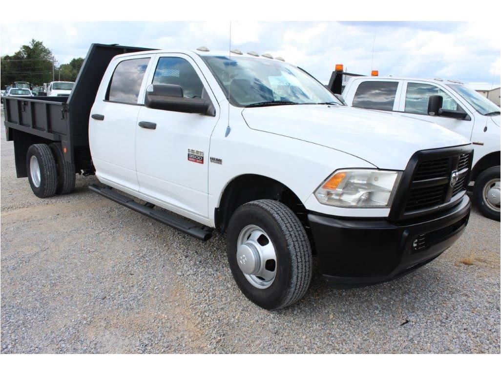 2012 DODGE 3500 Flatbed Truck; VIN/SN:3C7WDSCT4CG245614 -:- crew cab, V8 gas, A/T, AC, 9' flatbed body w/ tailgate, removable sides, 90,817 miles