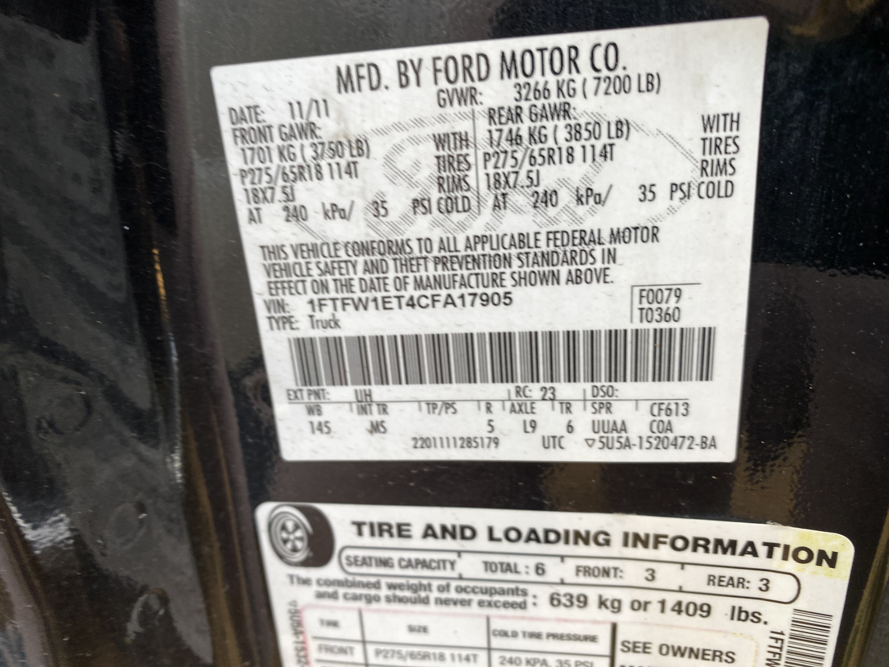 Vehicle ID Number: 1FTFW1ET4CFA17905