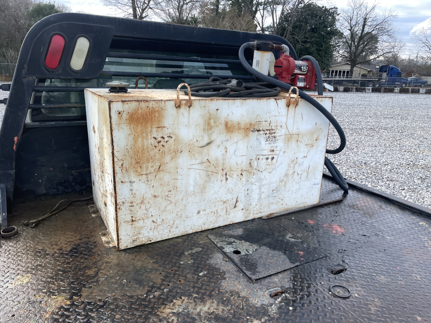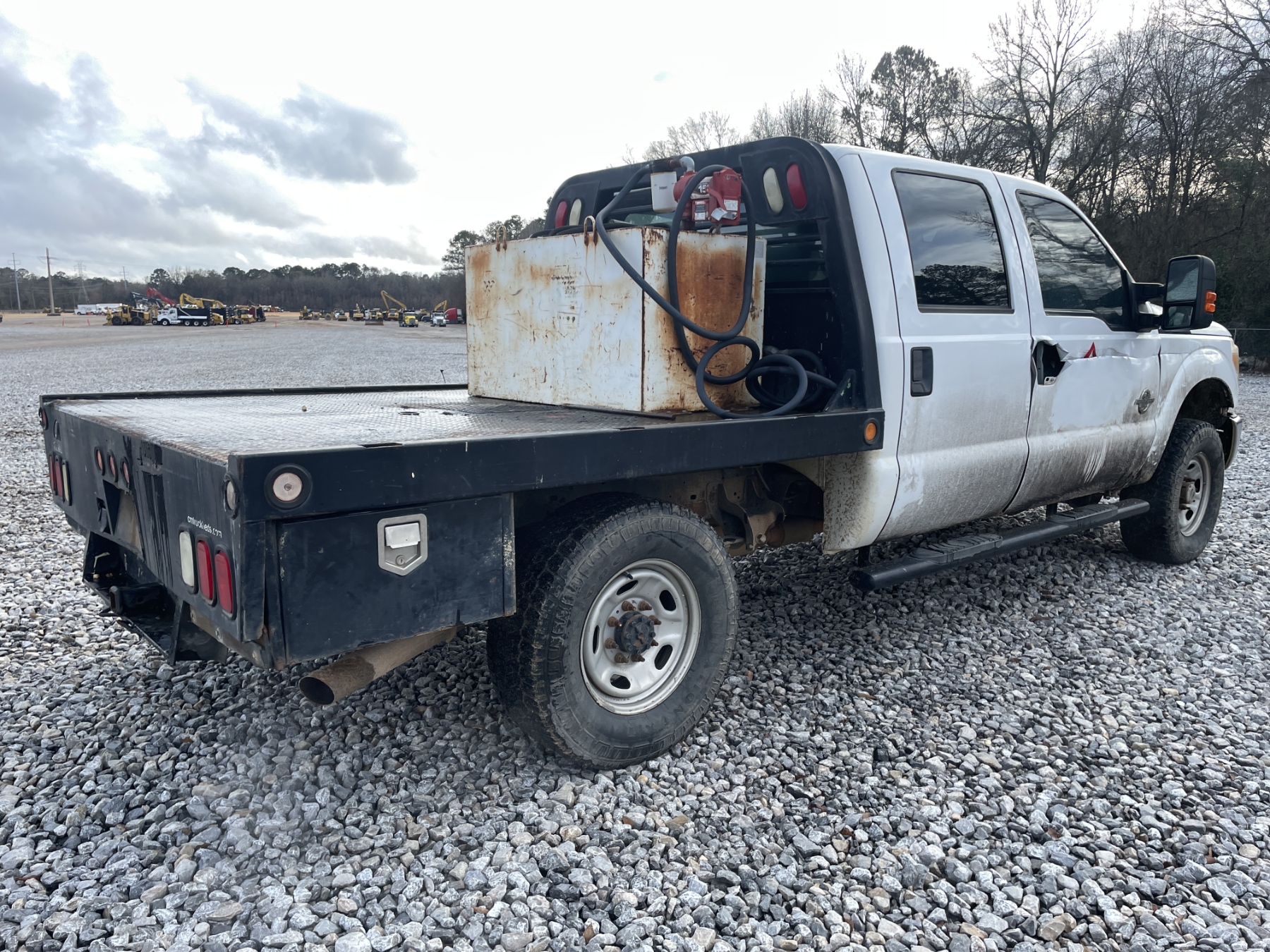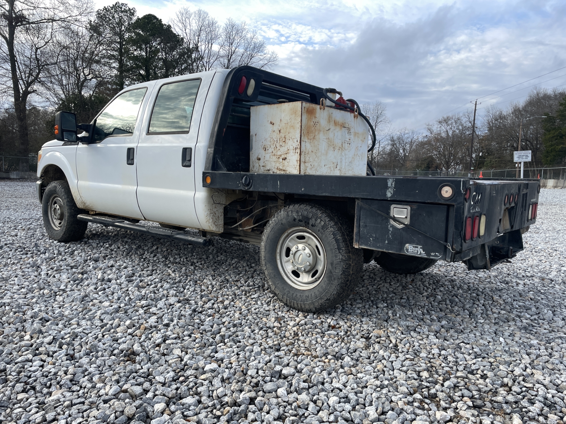 4x4, gas, crew cab, A/T, 7' CM flatbed, fuel tank