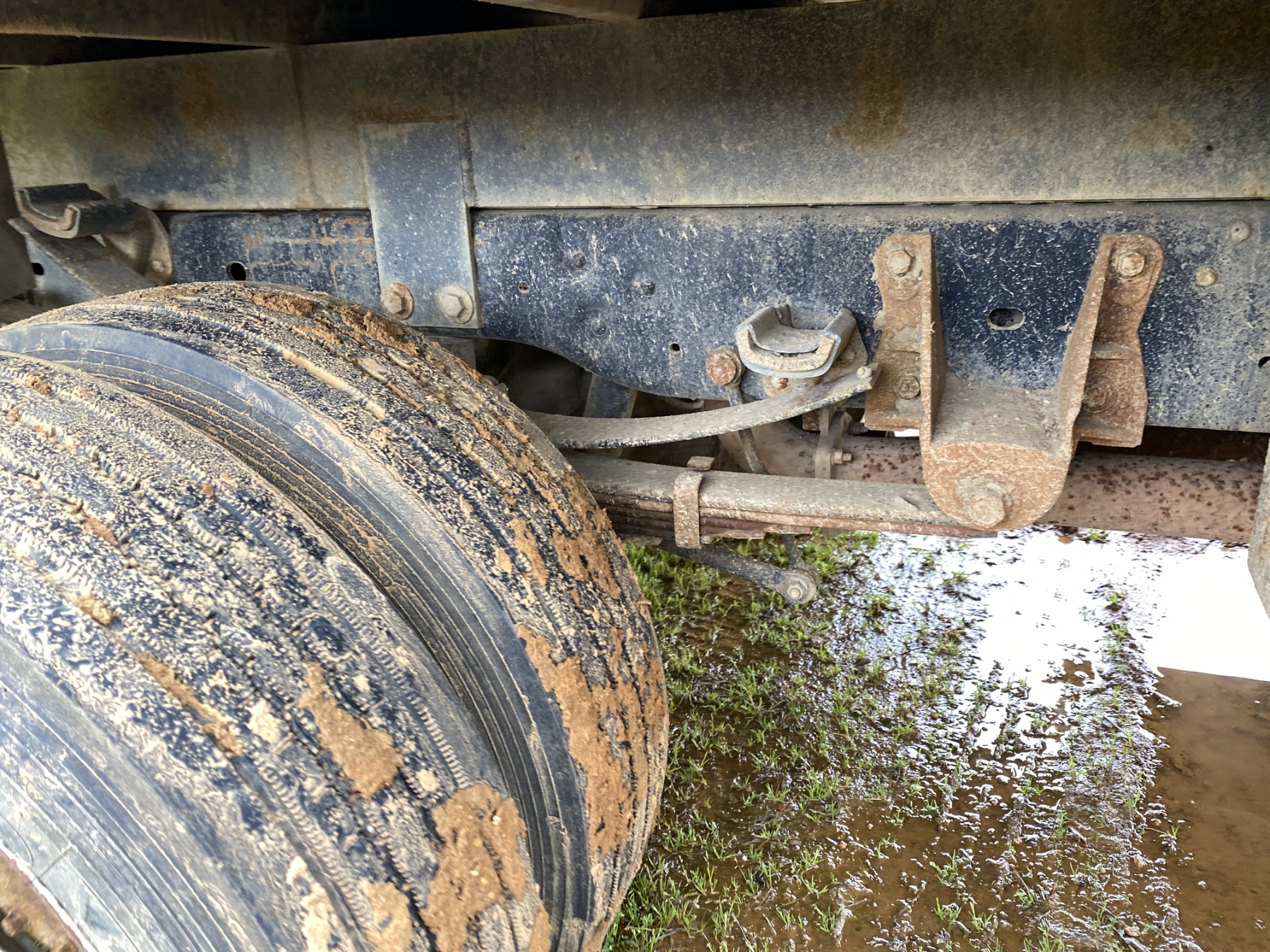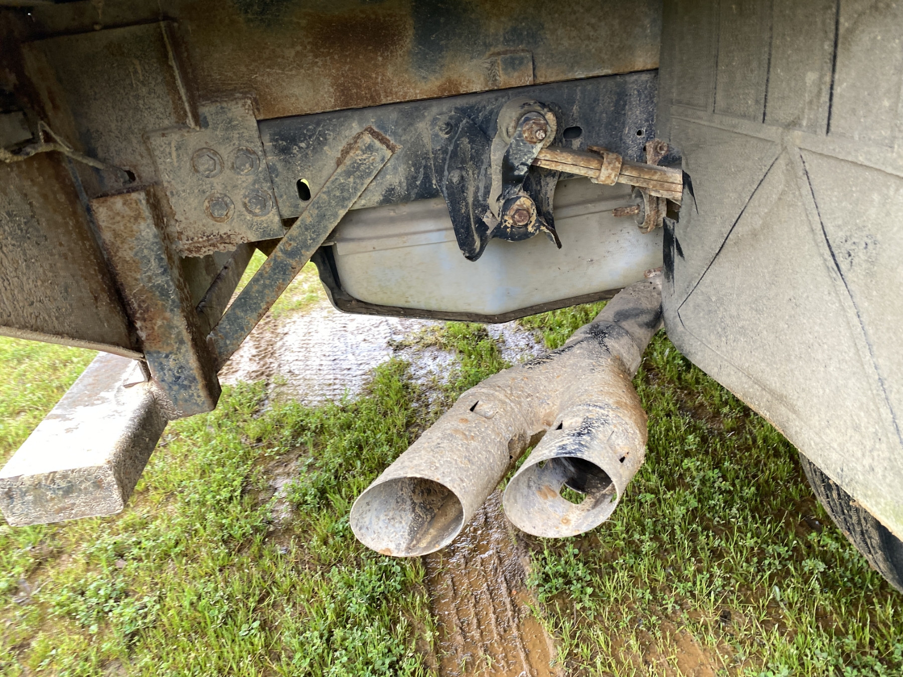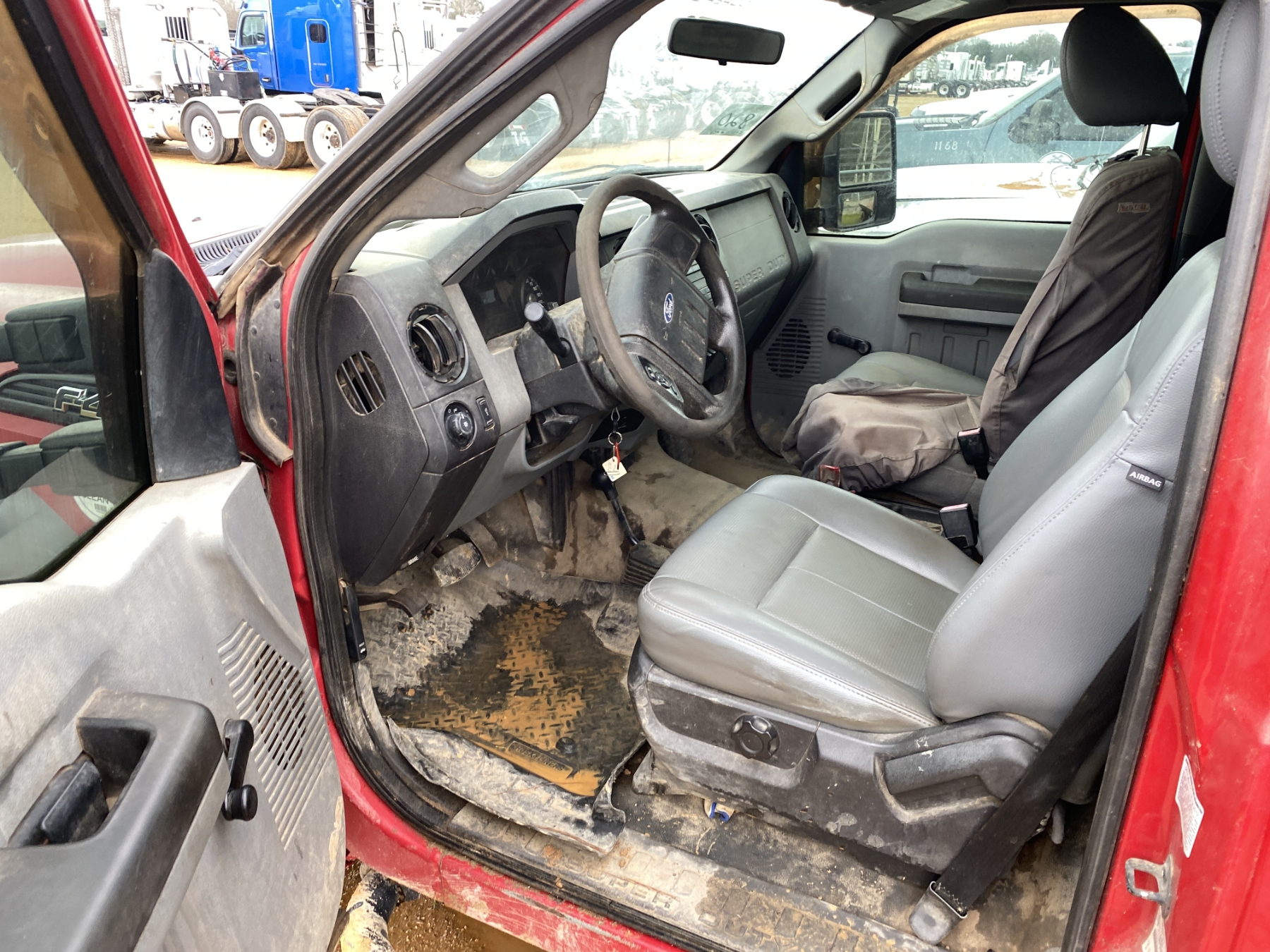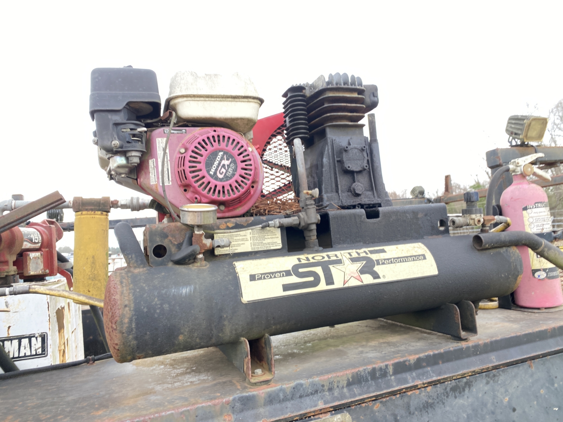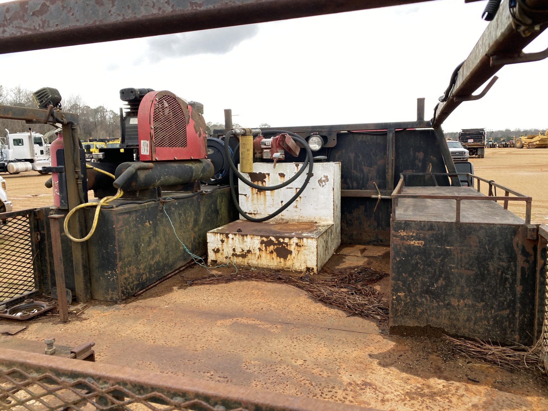 4x4, dually, Power Stroke diesel, A/T, 12' flatbed, air compressor, fuel tank, ladder rack