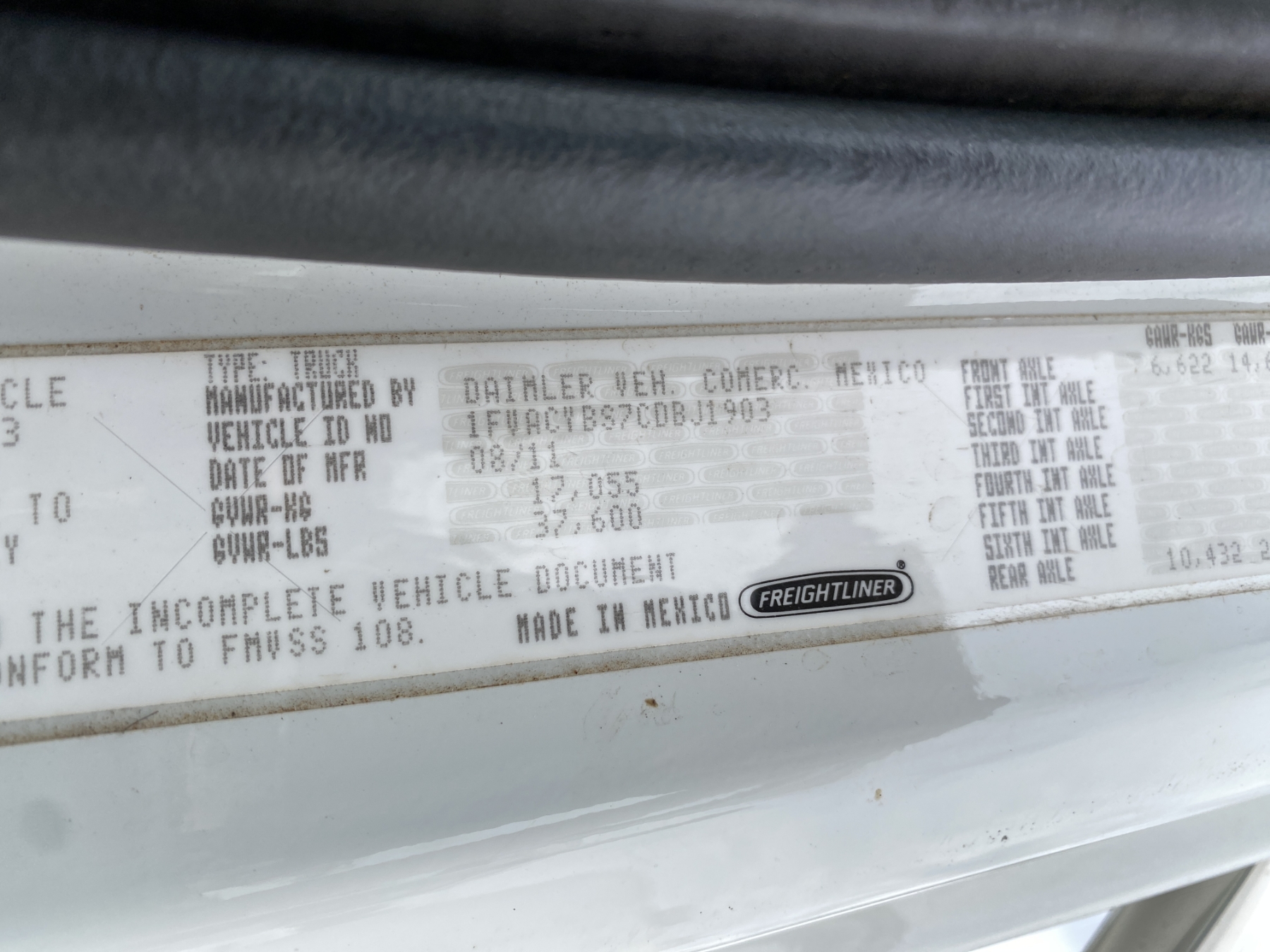 Vehicle ID Number: 1FVACYBS7CDBJ1903