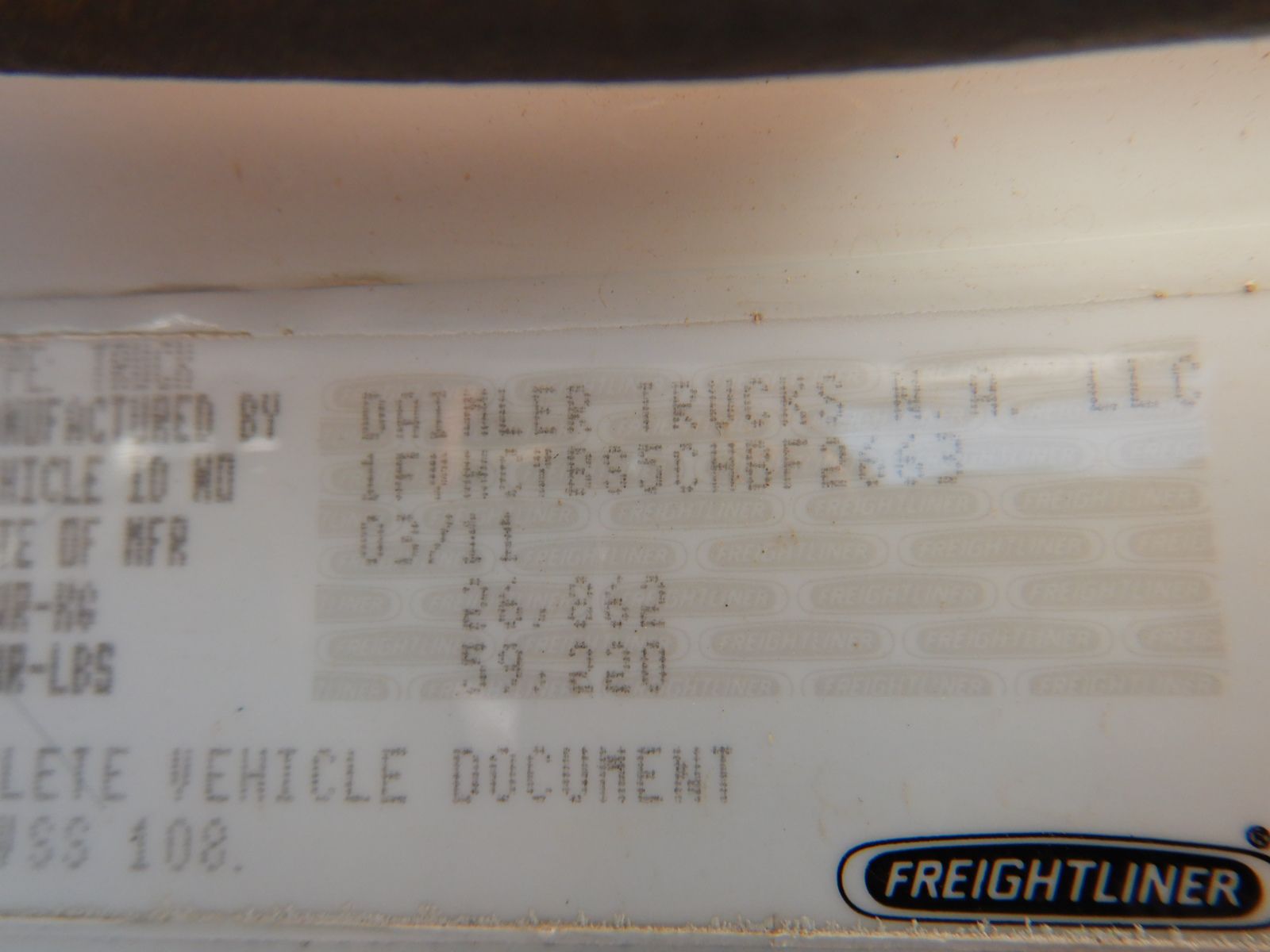Vehicle ID Number: 1FVHCYBS5CHBF2663