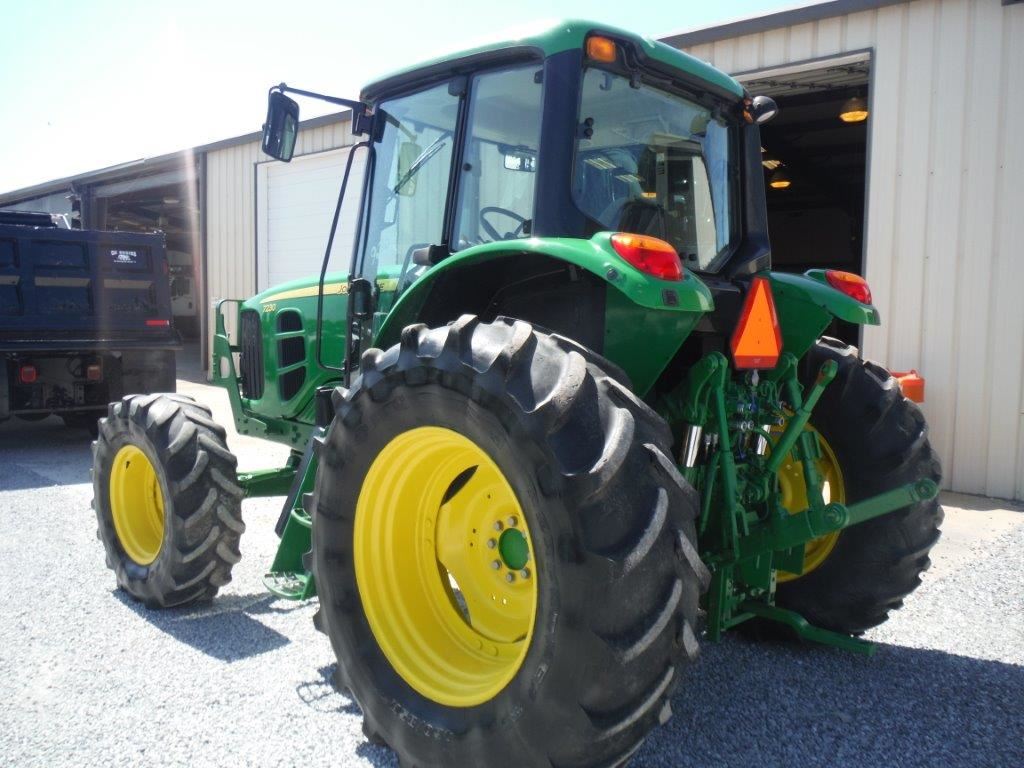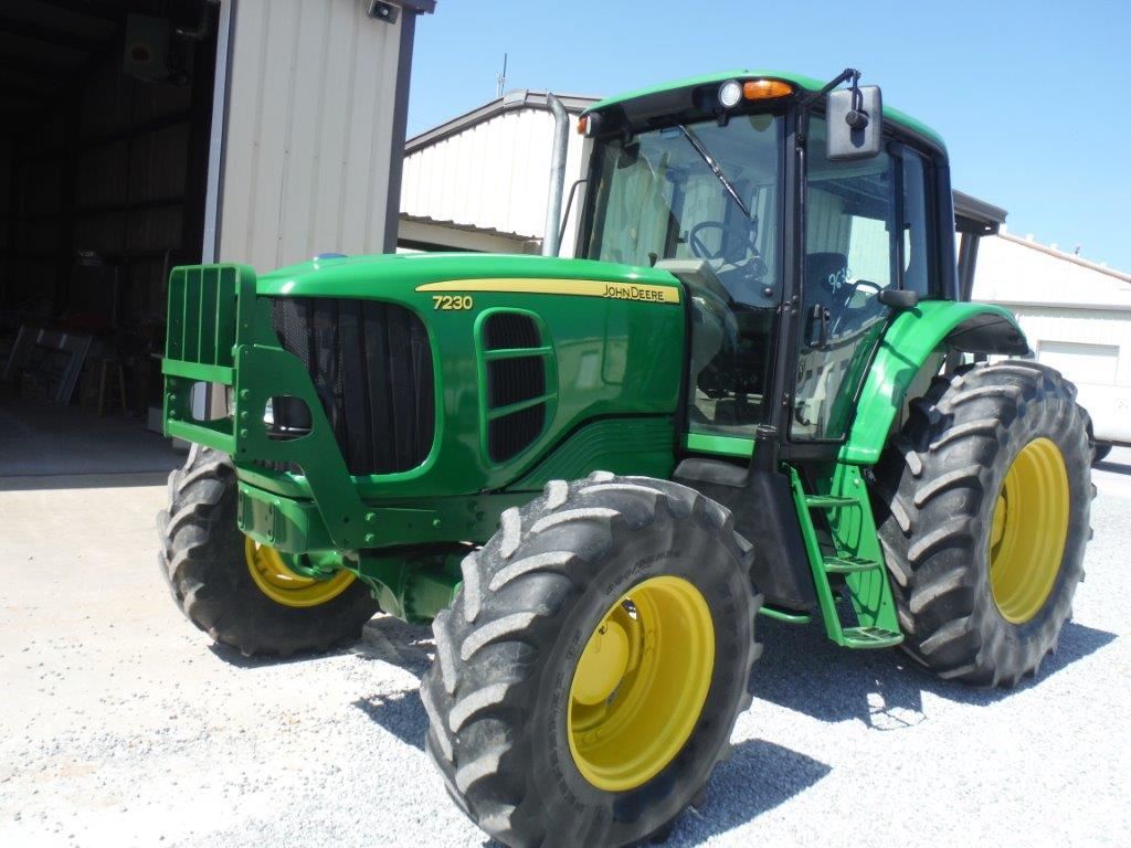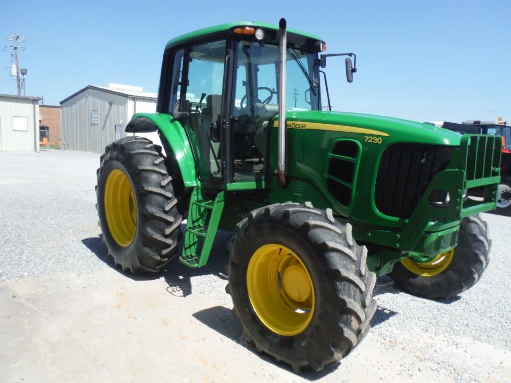 2012 JOHN DEERE 7230 MFWD FARM TRACTOR, S/N 711482, 3 PTH, PTO, DRAW BAR, TOP LINK, 3 HYD REMOTES, ECAB W/AC, 18.4-34 REAR TIRES, 14.9R-24 FRONT TIRES, METER READING 1,215 HOURS