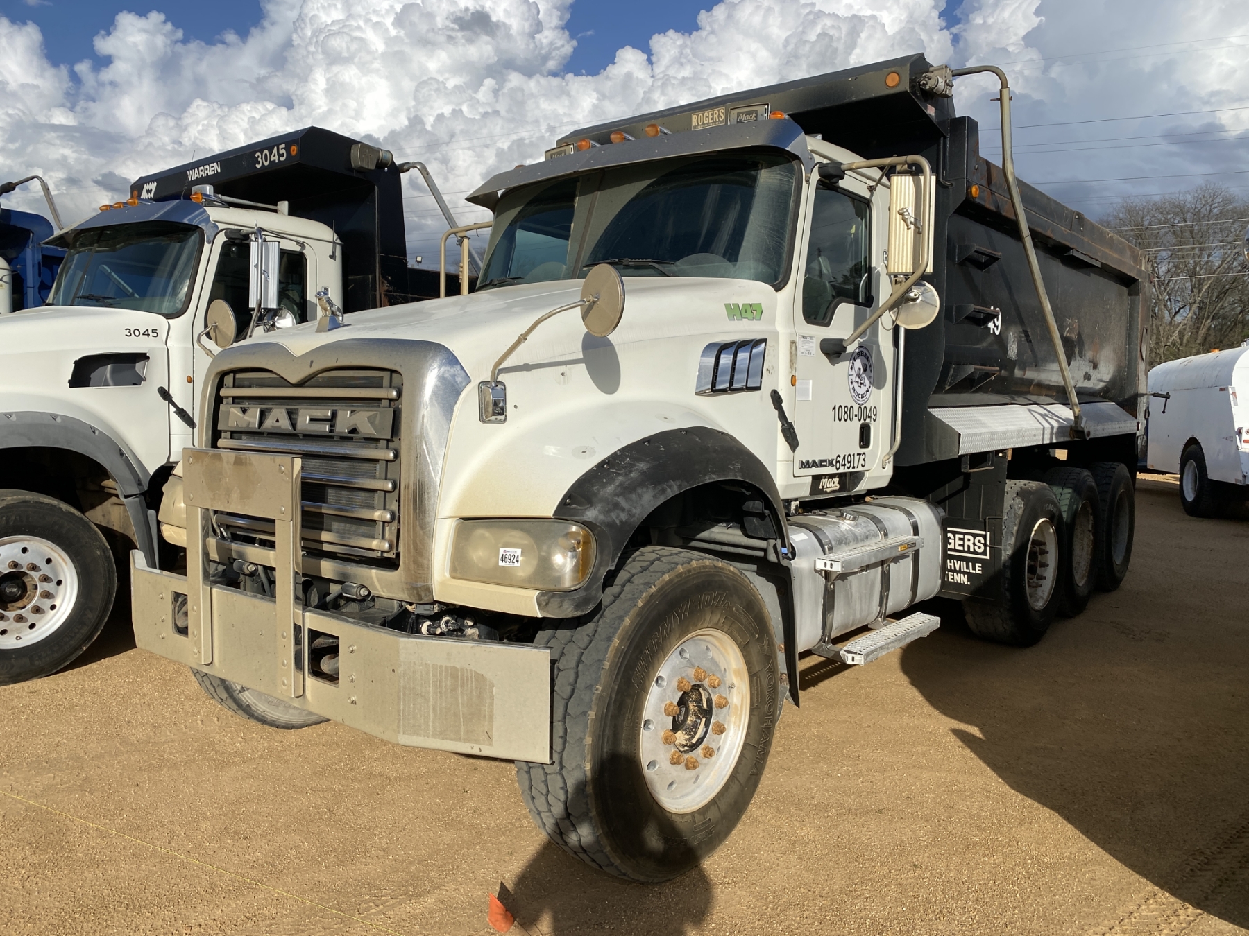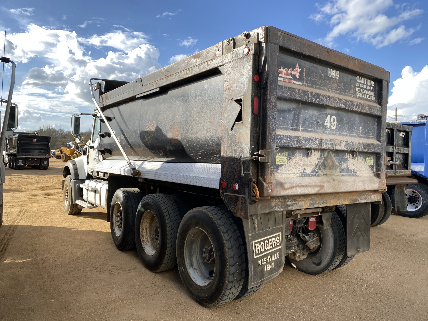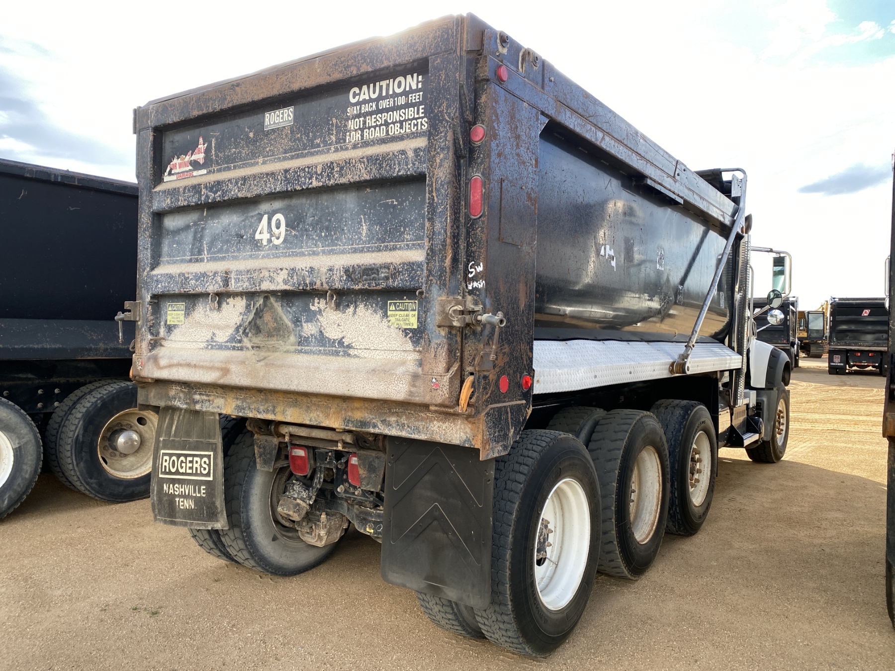Tri Axle, 455 HP Mack MP8 engine, 8LL trans, 44K rears, 18K front, 16' Rogers body, high-lift gate, 11R24.5 rear tires, 385/65R22.5 front tires