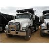 2012 MACK GU713 TRI-AXLE DUMP, S/N 1M2AX04C5CM010844, 405 HP MACK MP7 ENG, 10 SPD MACK TRANS, 44K REARS, 18K FRONT, ENGINE BRAKE, A/C, P/S, 16' REYNOLDS DUMP BODY, ELEC TARP, AIR TAILGATE, 385/65R22.5 FRONT TIRES ON ALUM DISC WHEELS, 11R24.5 REAR TIRES ON STEEL DISC WHEELS, ODOMETER READING 23,026 MI (COUNTY OWNED)