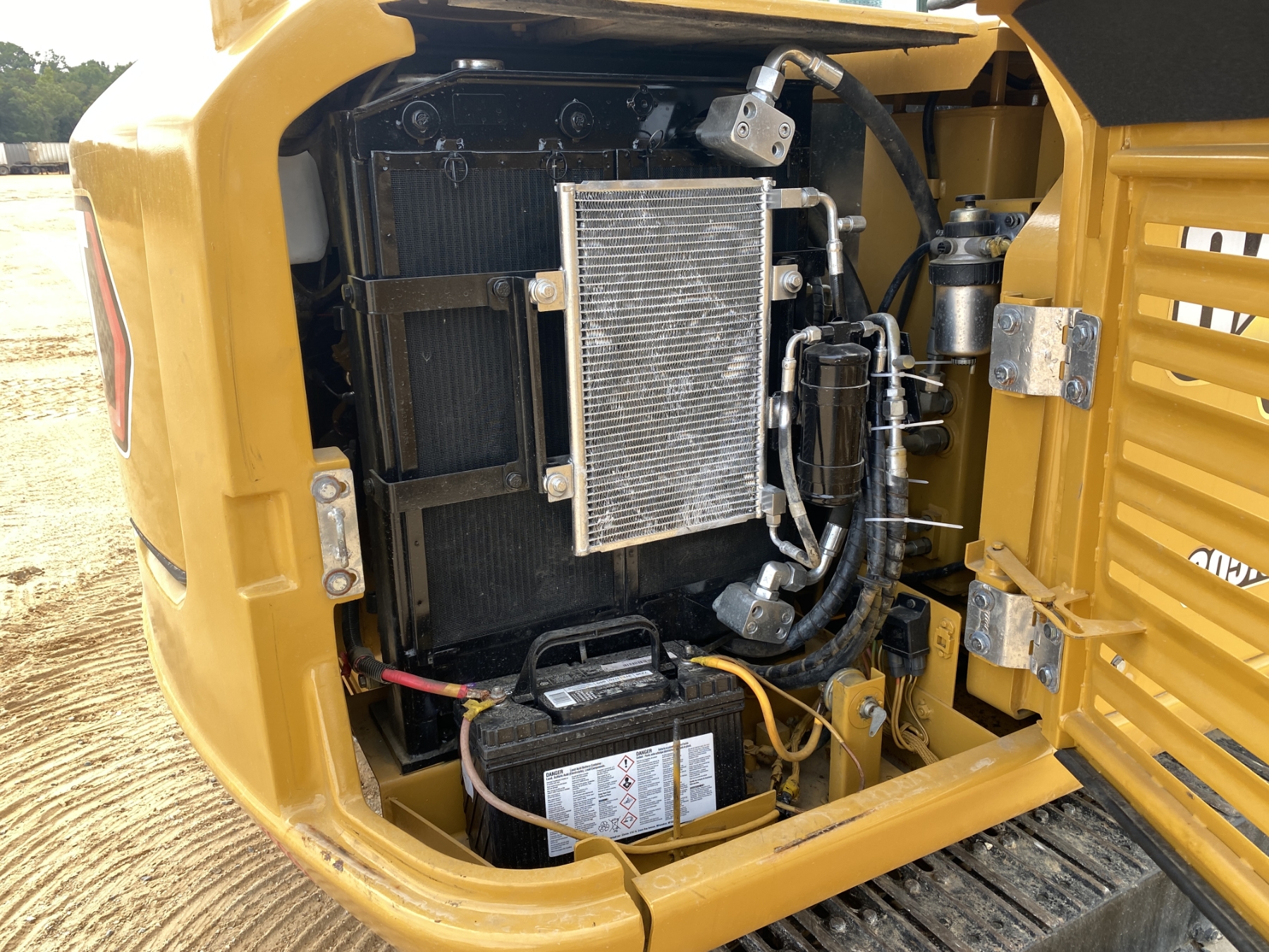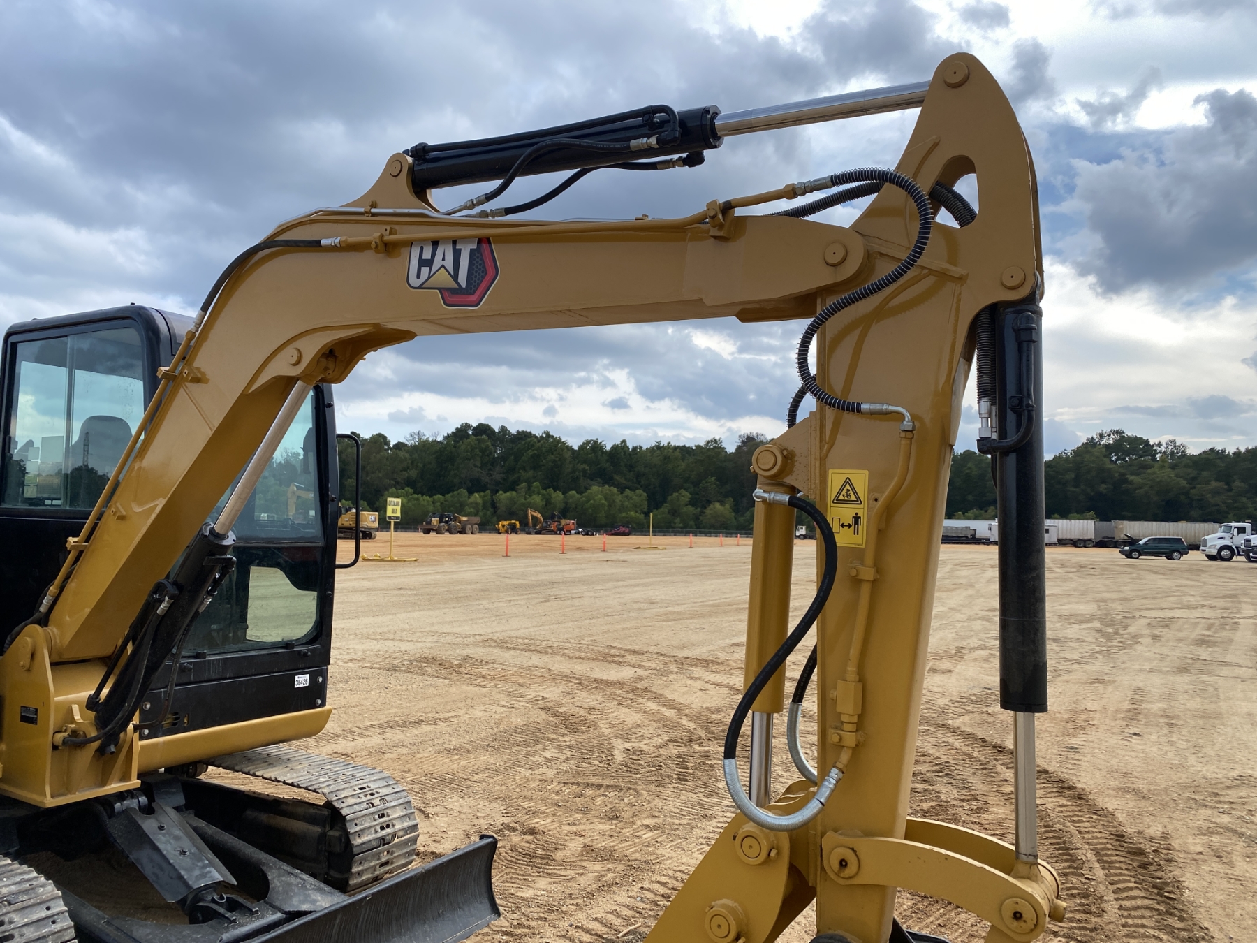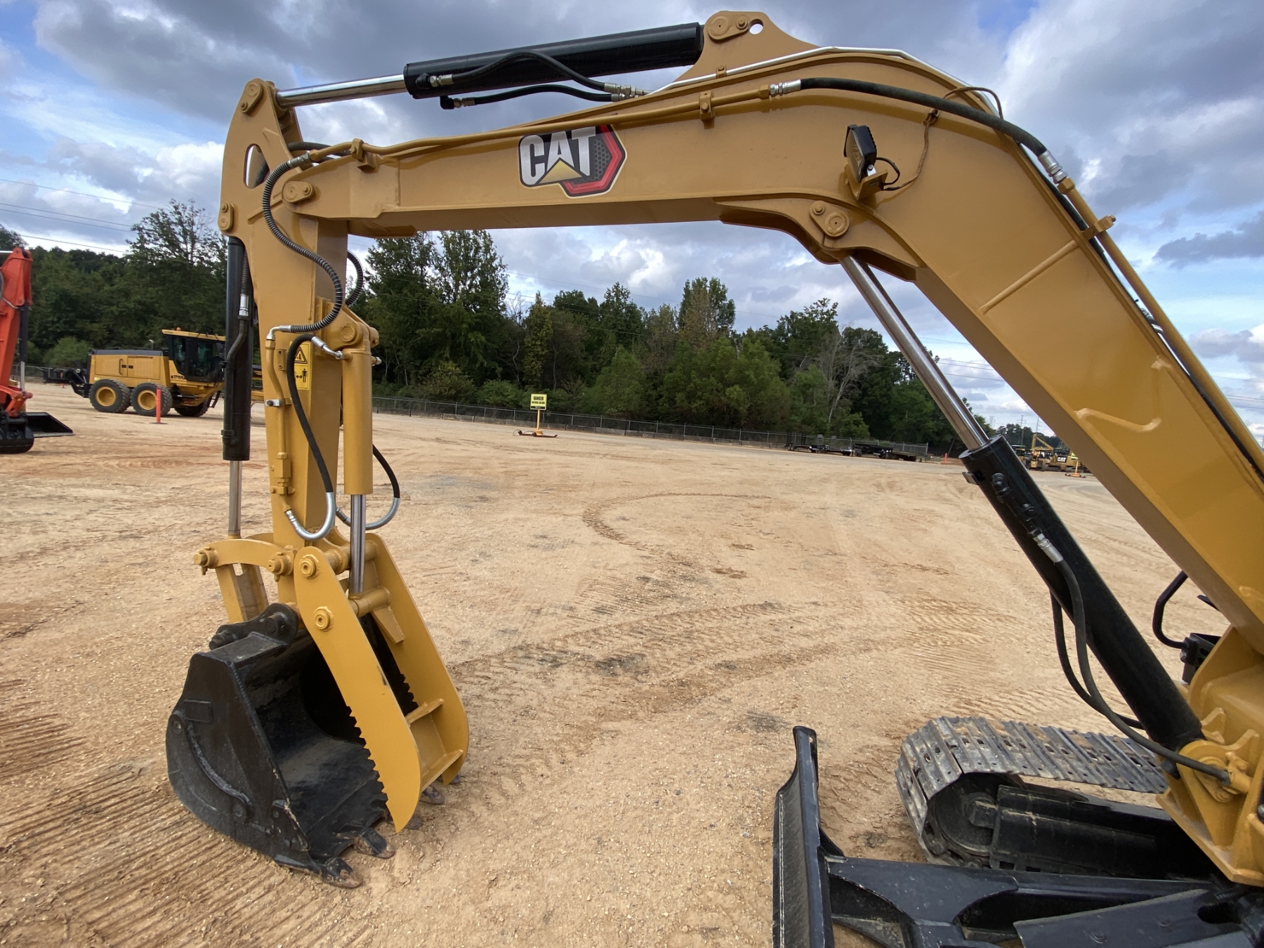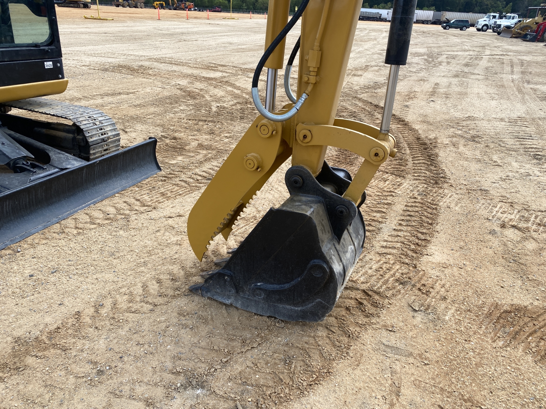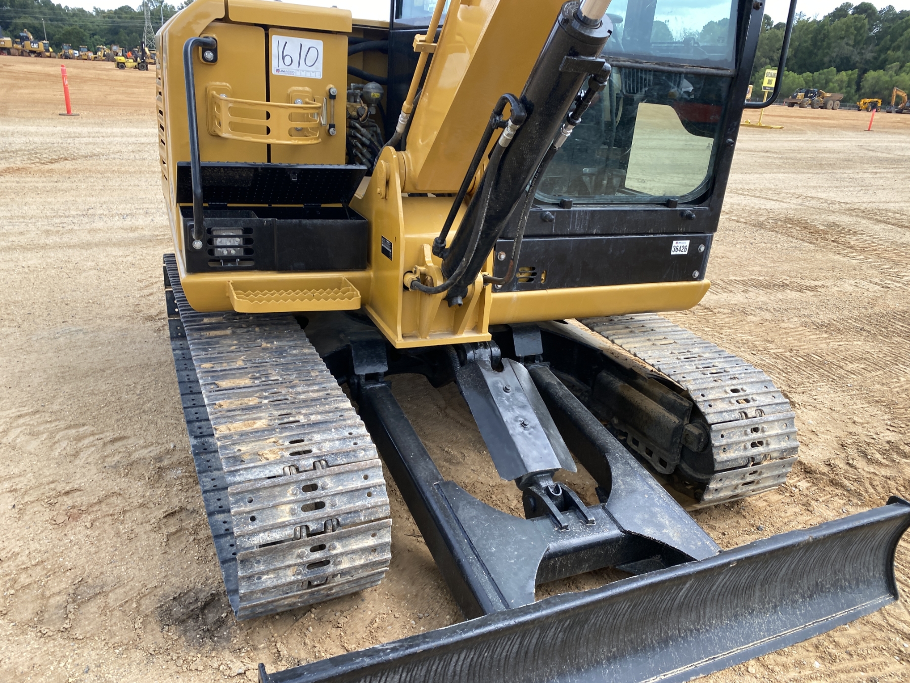 4' 10" stick, 28" bucket, hyd thumb, aux hyd, blade, cab, A/C