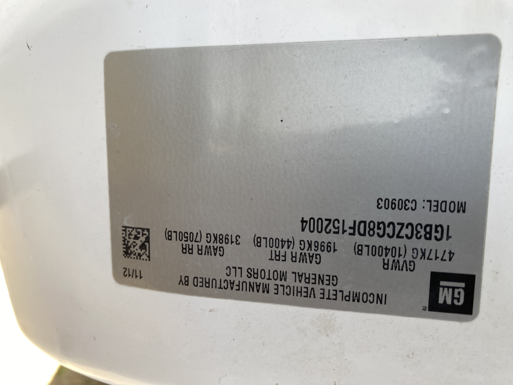 Vehicle ID Number: 1GB3CZCG8DF152004