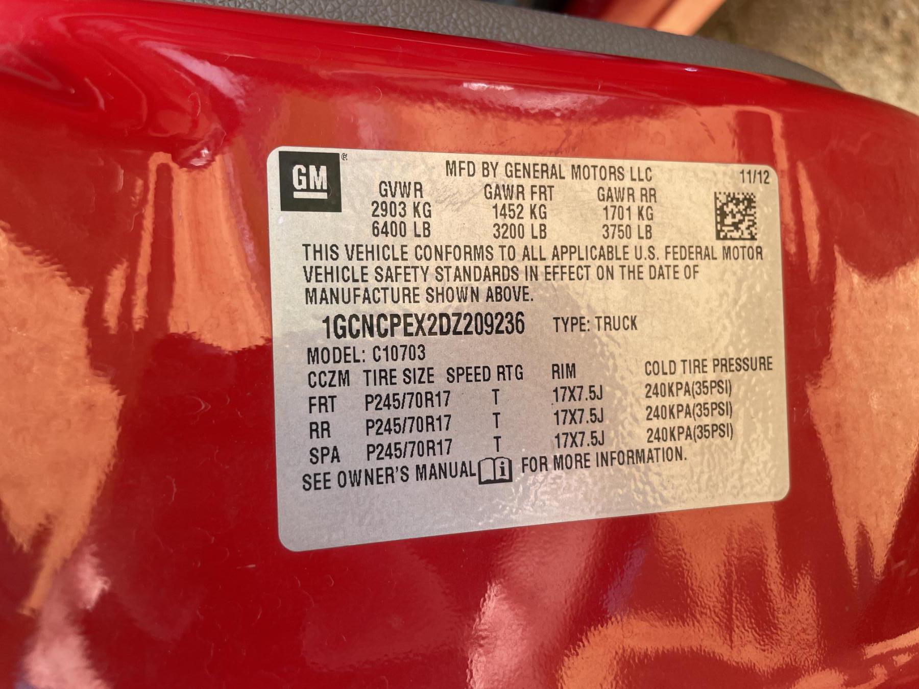 Vehicle ID Number: 1GCNCPEX2DZ209236