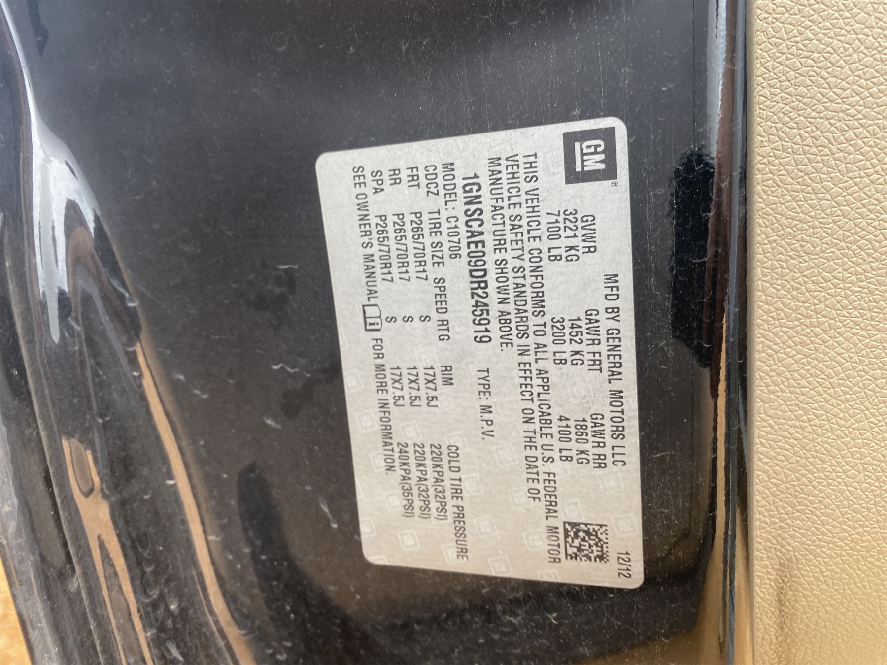 Vehicle ID Number: 1GNSCAE09DR245919