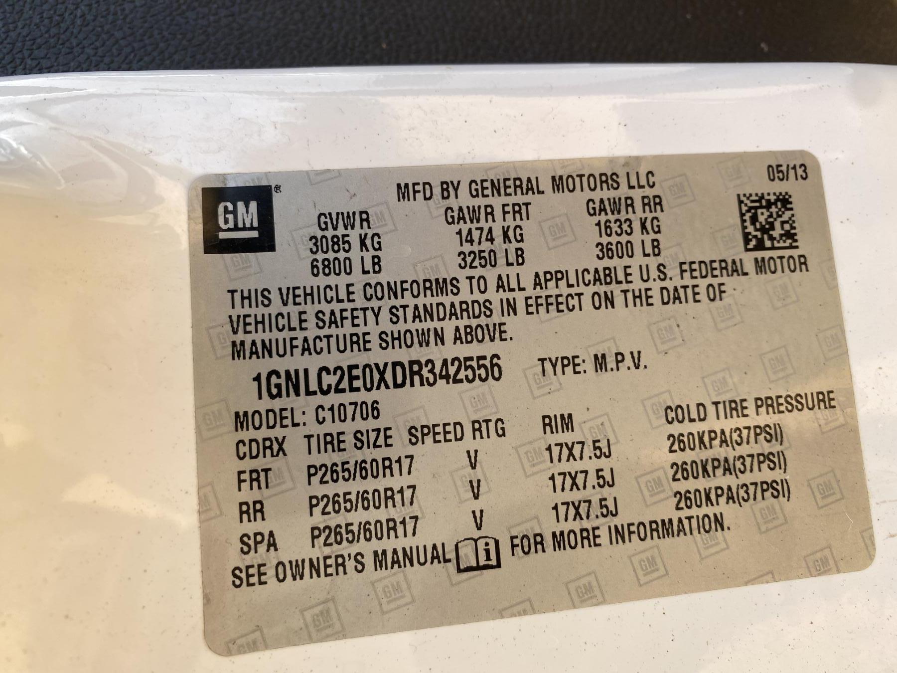 Vehicle ID Number: 1GNLC2E0XDR342556