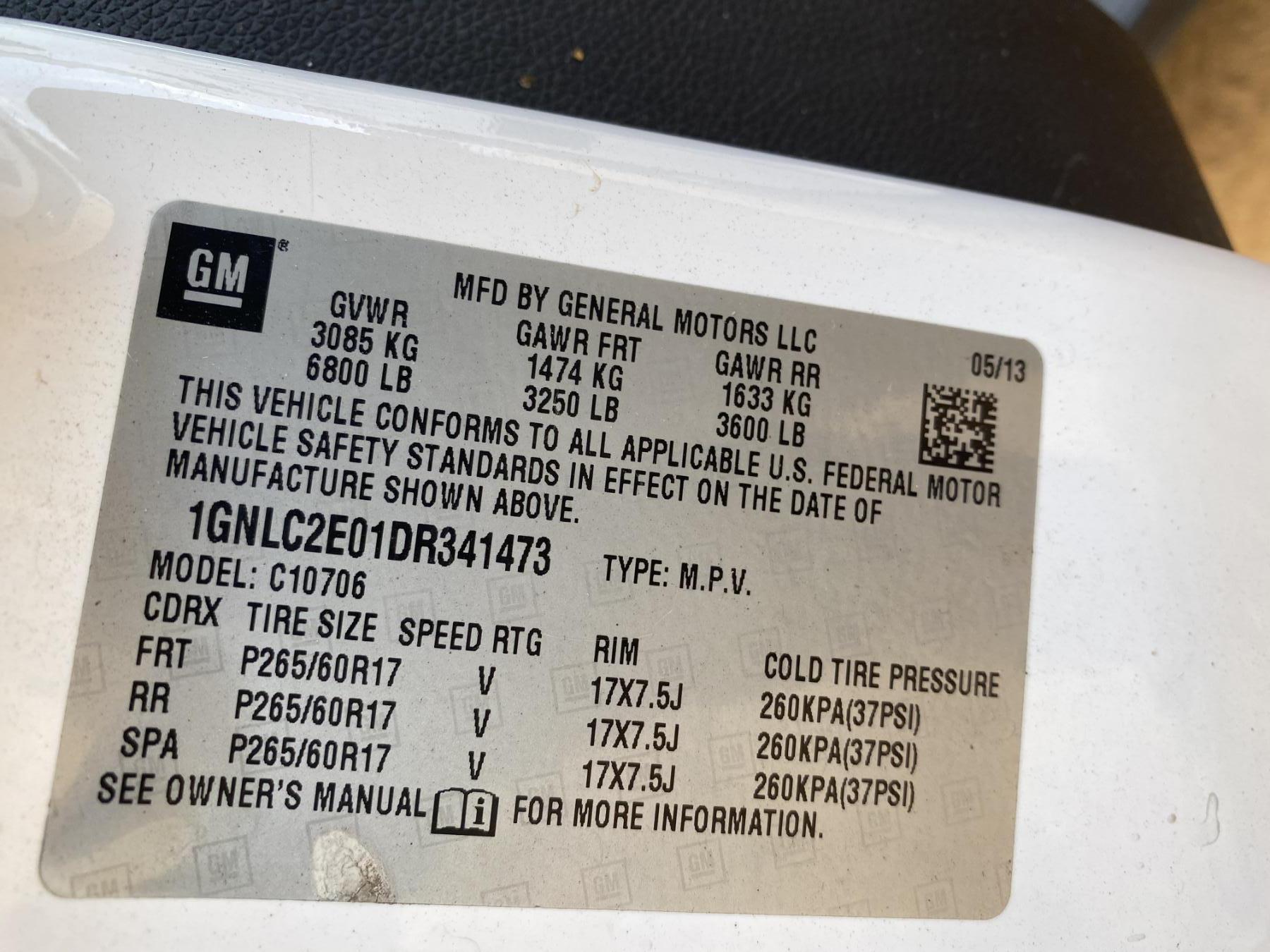 Vehicle ID Number: 1GNLC2E01DR341473